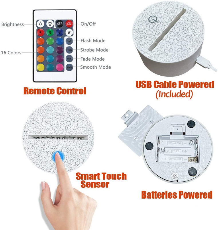 3. Colorful touch + remote control: Acrylic board*1 ABS base*1 USB data cable*1 multi-function remote control*1