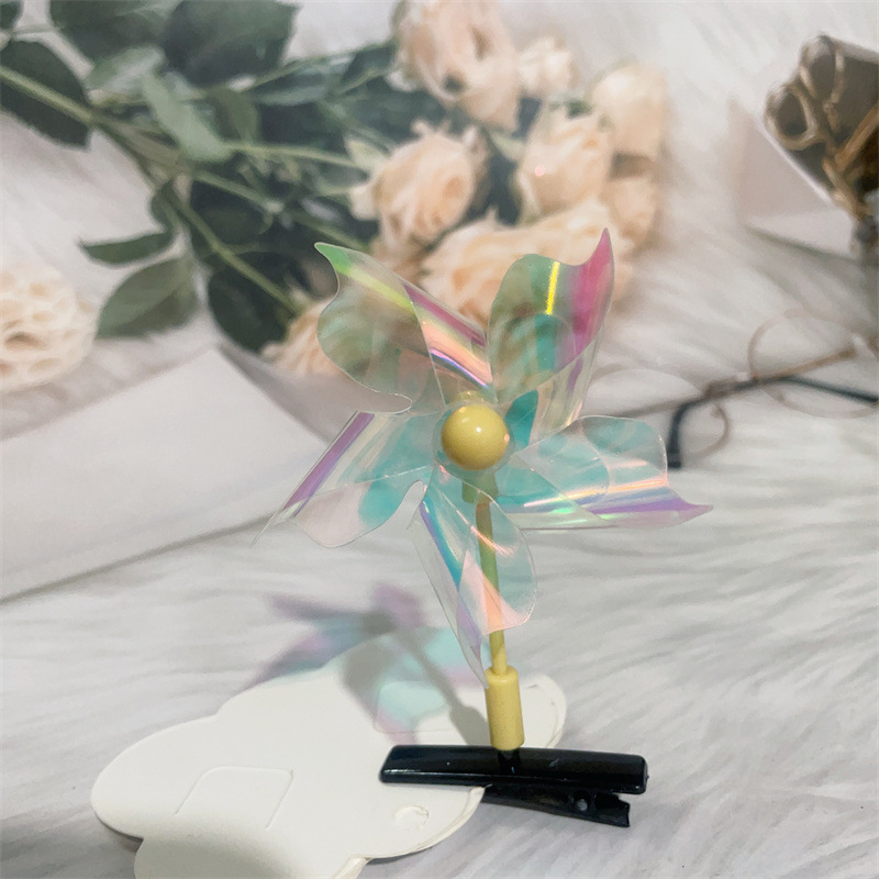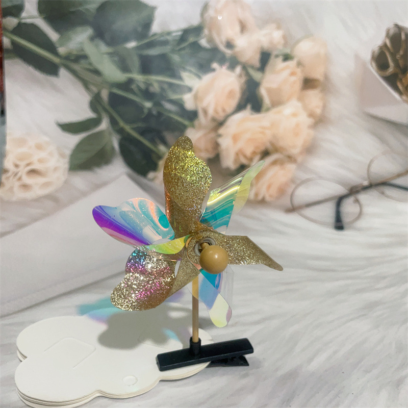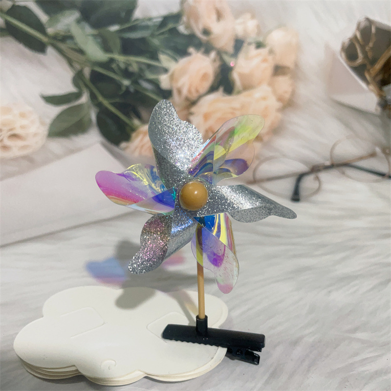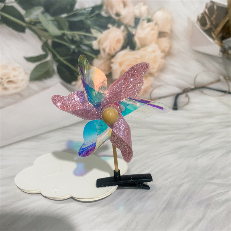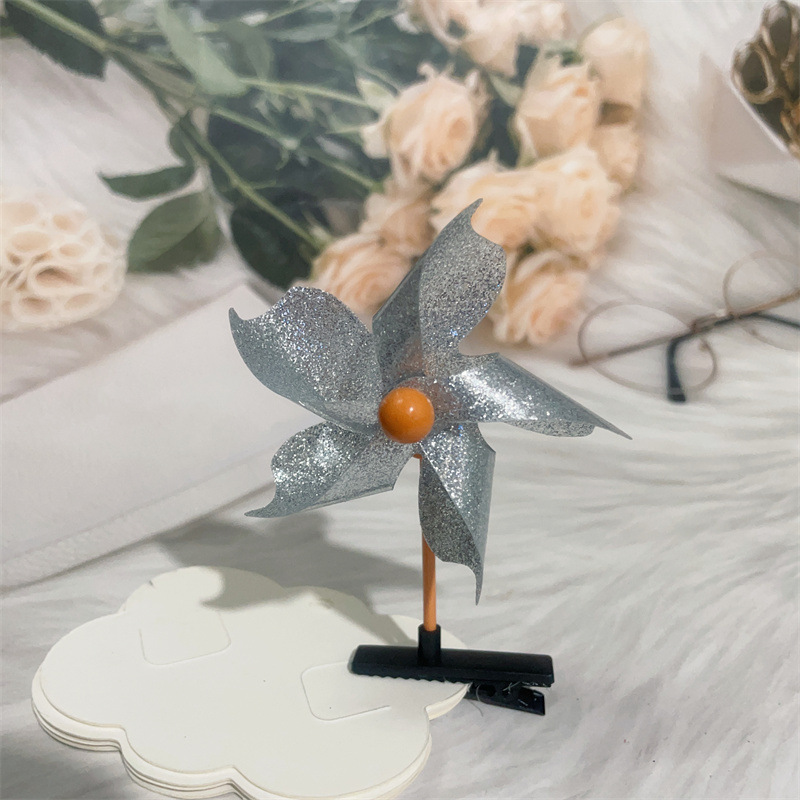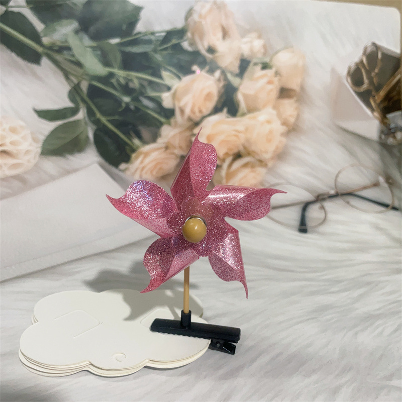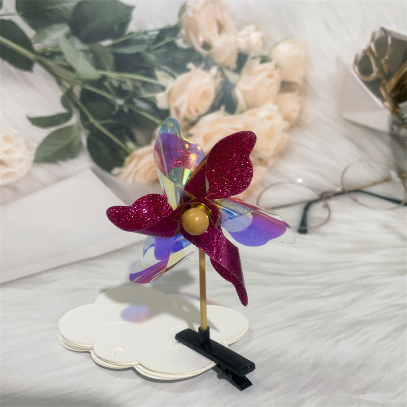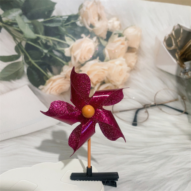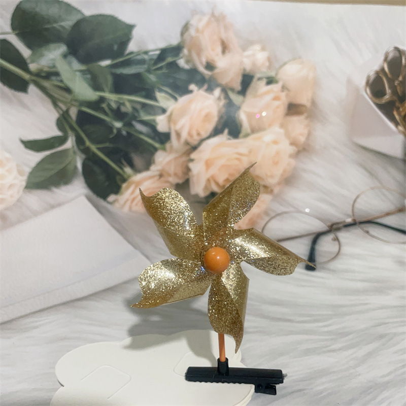 Color: colorful windmill mixed hair, golden five-leaf windmill barrettes, Rose red five-leaf windmill barrettes, pink five-leaf windmill barrettes, transparent five-leaf windmill barrettes, silver five-leaf windmill barrettes, double gold six-leaf windmill barrettes, double-piece silver six-leaf windmill barrettes, double-piece pink six-leaf windmill barrettes, double-piece Rose Red Six-leaf windmill barrettes