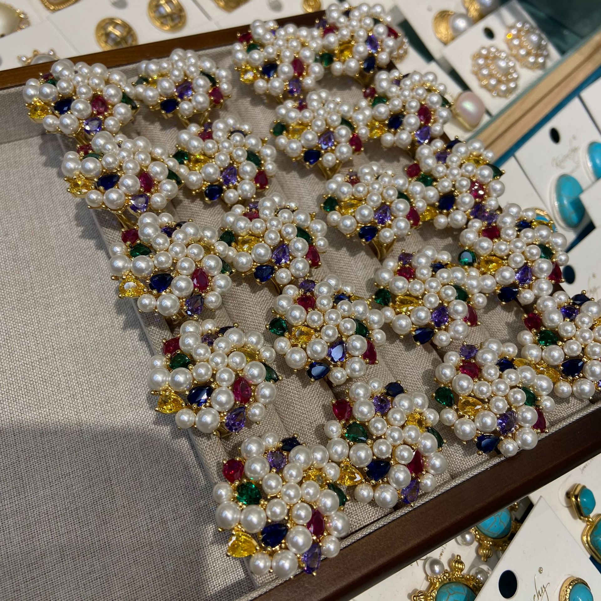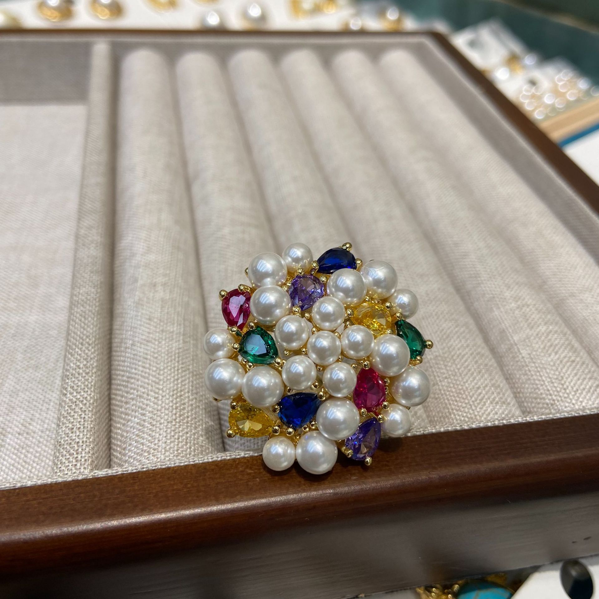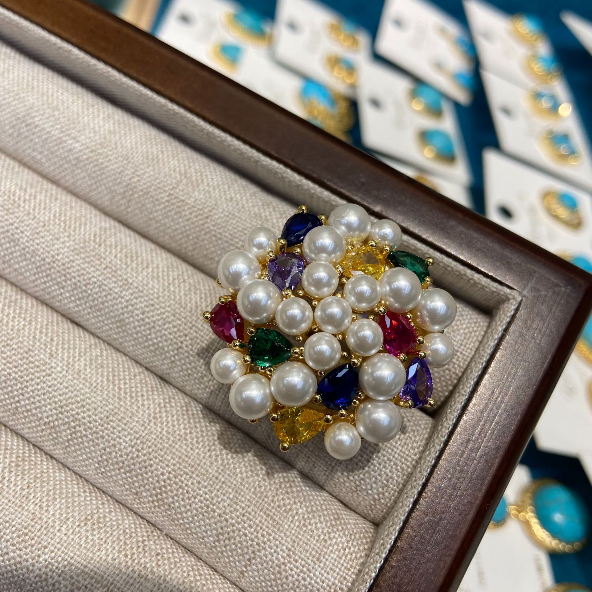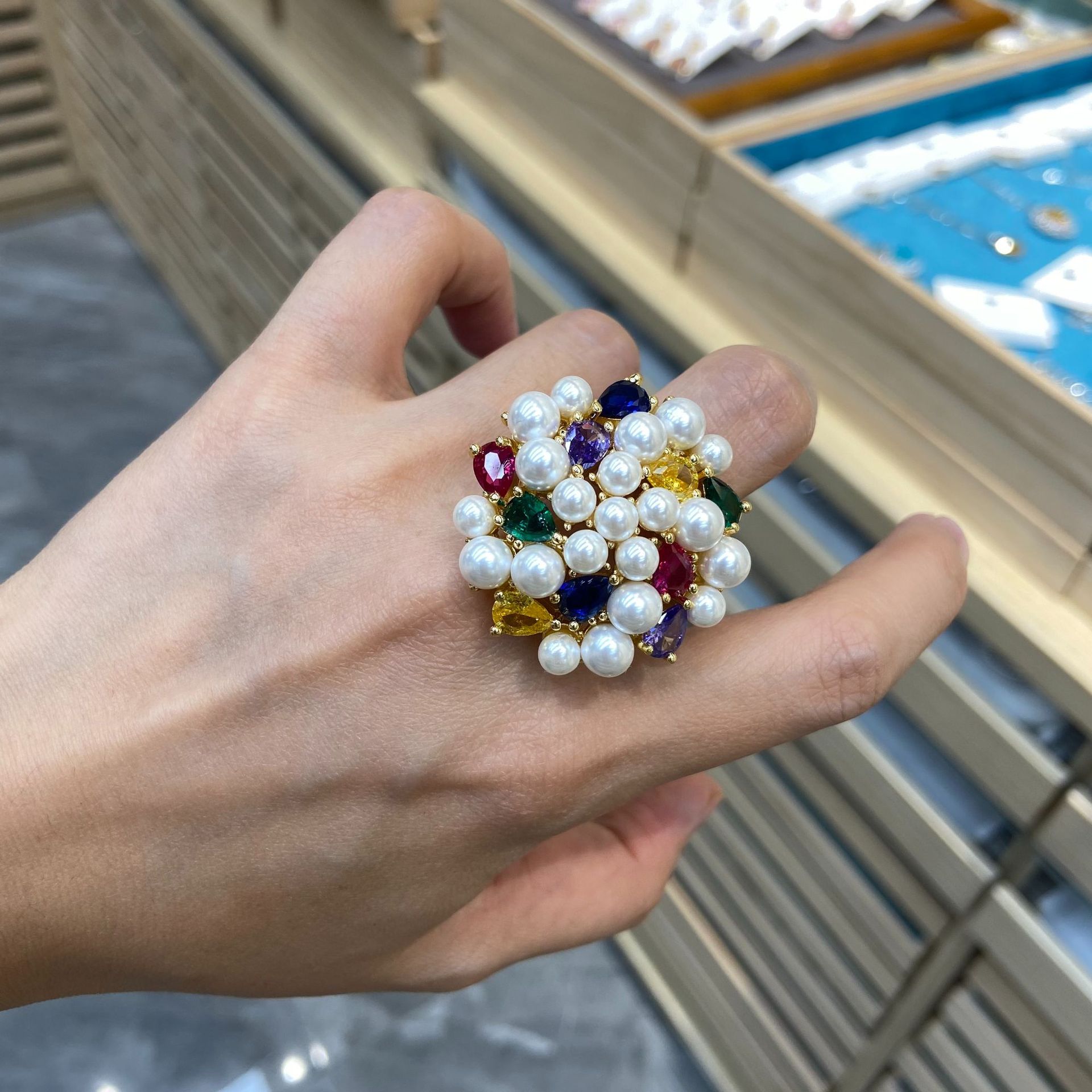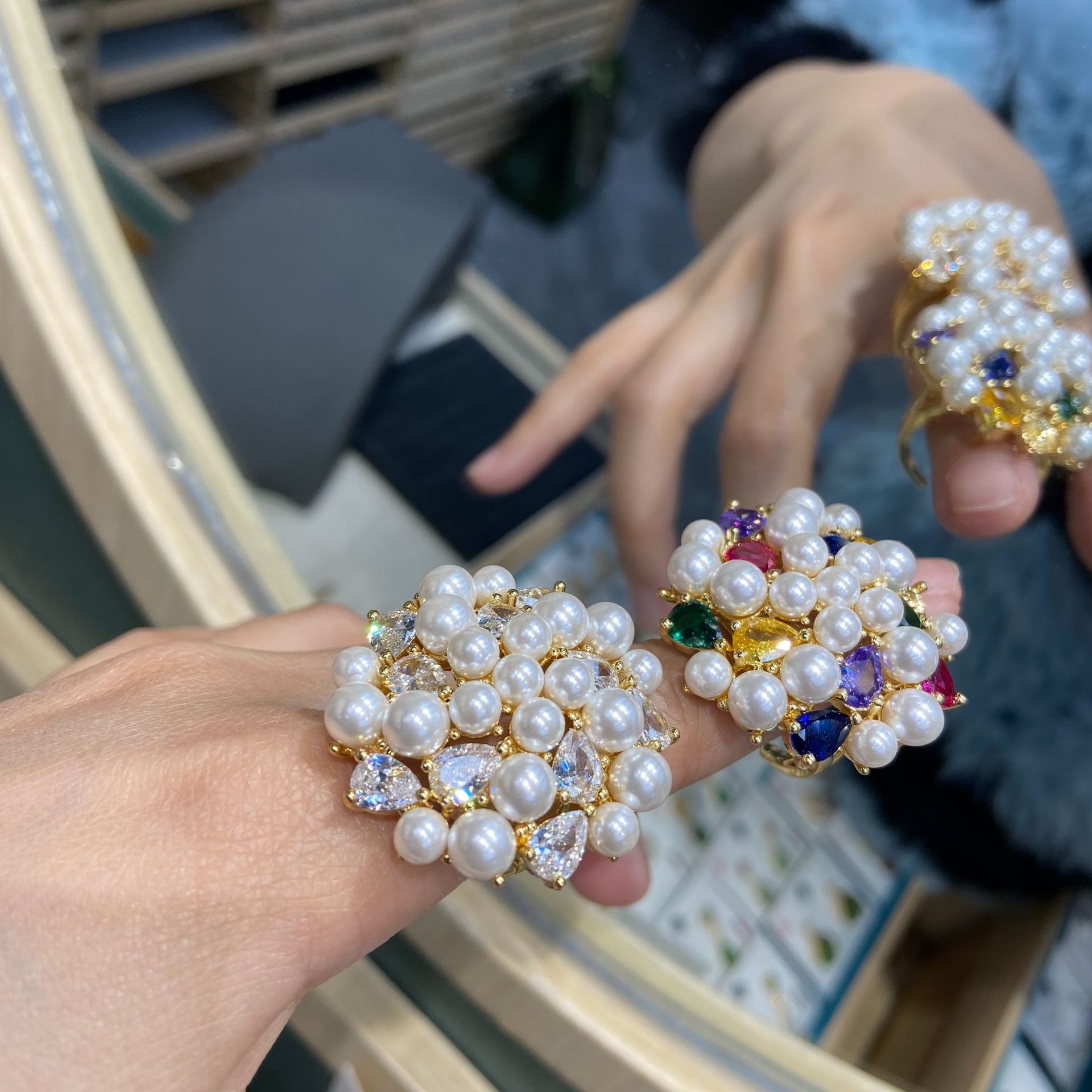 Color: colorful zircon pearl ring, White zircon pearl ring