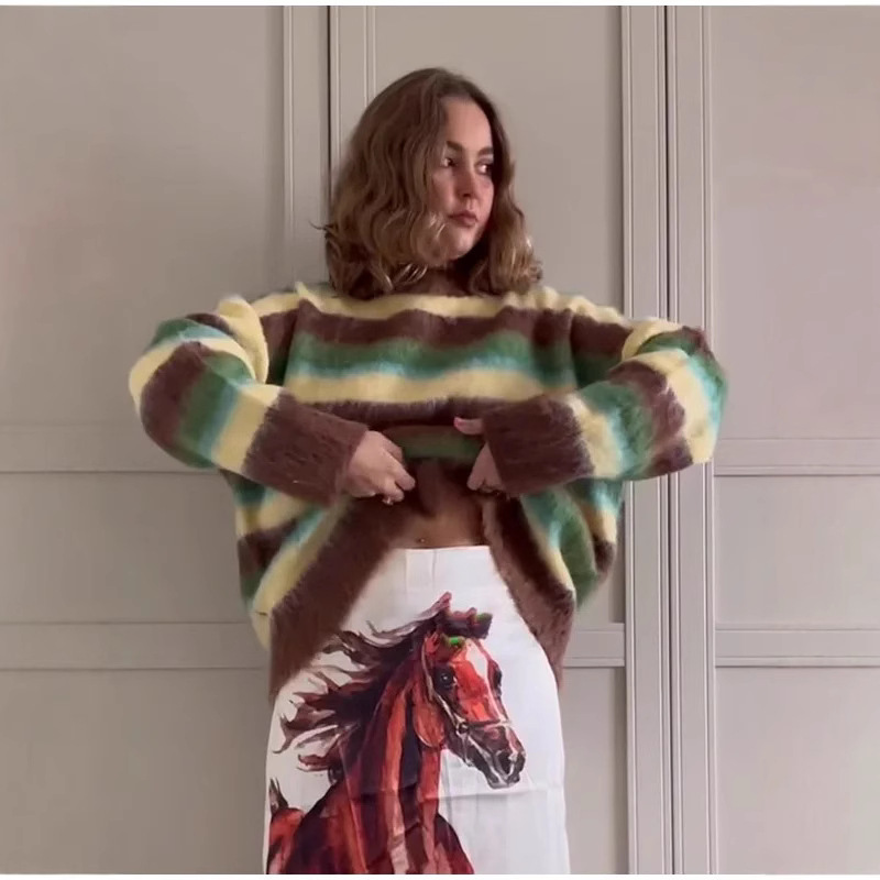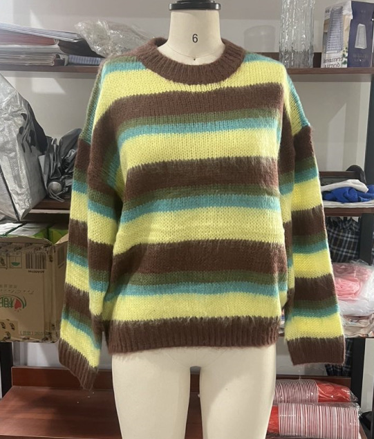 Color: Multi-colored Crew-Neck Striped Sweater
