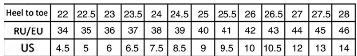 Sizes: 36, 37, 38, 39, 40, 41, 42, 43