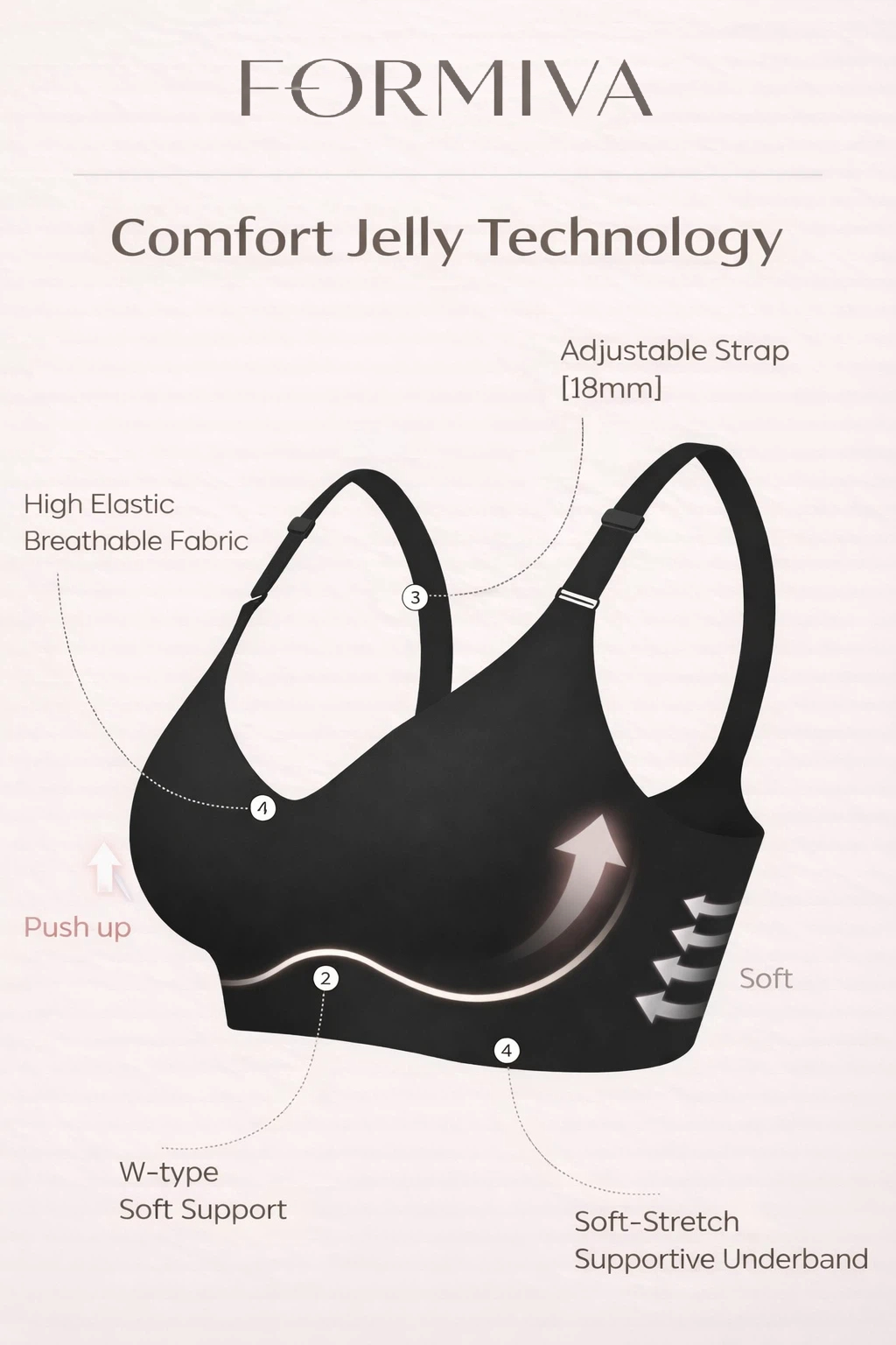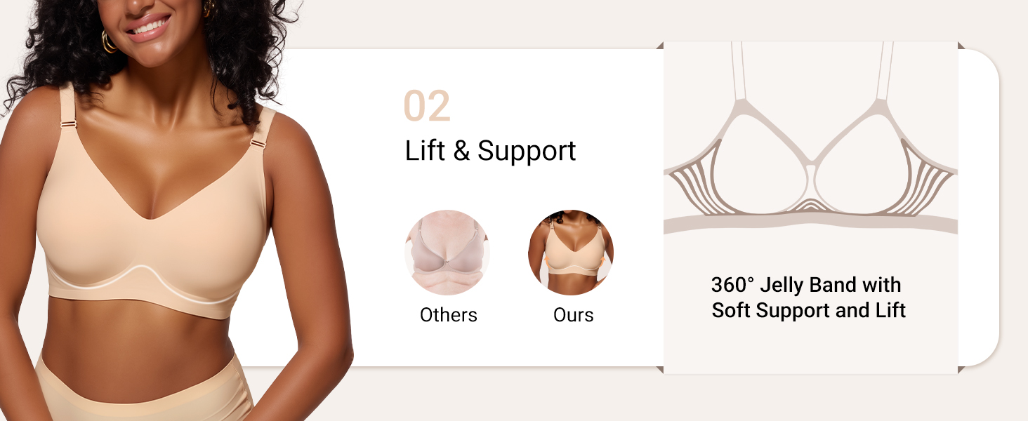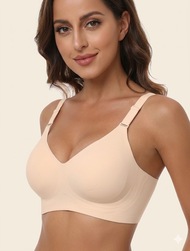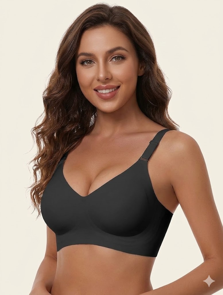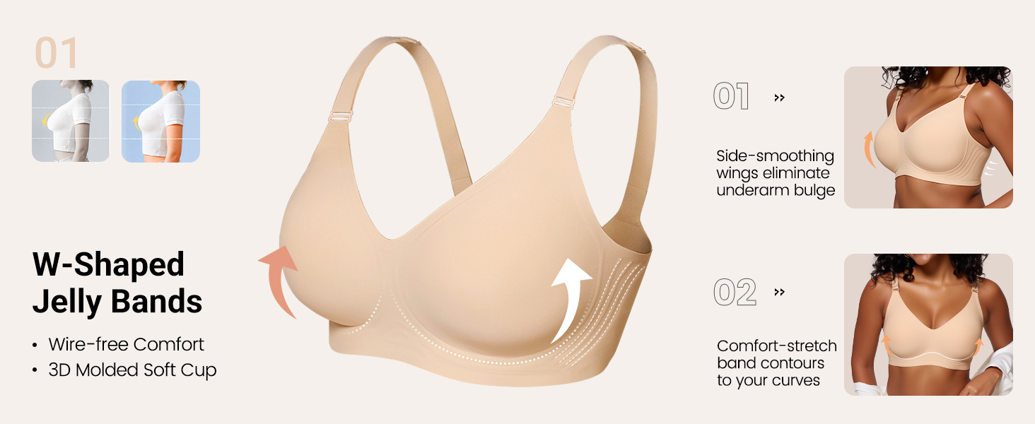 Jelly Wireless Push Up Bras: This Jelly Support Bras for women feature innovative W-shaped "Jelly Bands" and 3D molded cups, paired with a fully seamless construction that fits your body like a second skin. The flattering V-neck cut accentuates natural curves for a subtle push-up effect, while the stitch-free design eliminates friction and irritation. As wireless bras for women, it blends stylish shaping with unrestricted freedom of movement