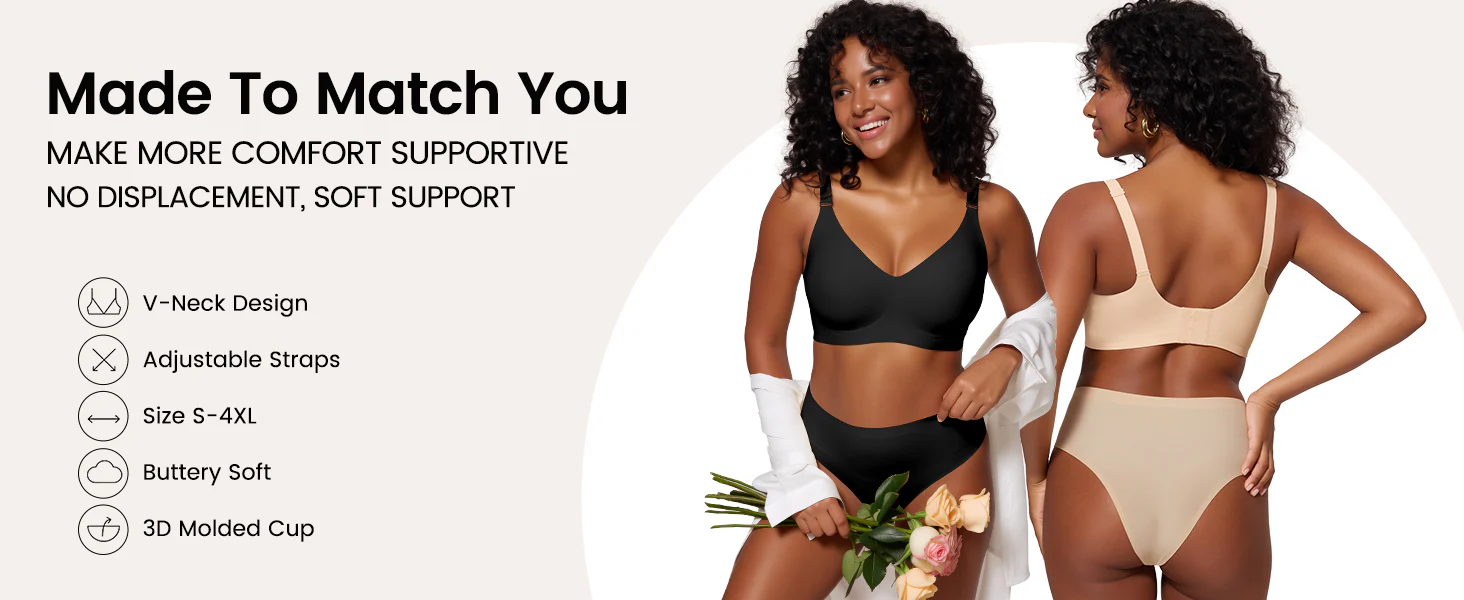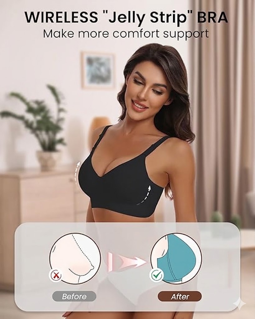 Inclusive Sizes (S-4XL): Please refer to the size chart before ordering S(32B, 32C, 32D, 34B); M(32DD, 34C, 34D, 36B); L(34DD, 36C, 36D, 38B); XL(36DD, 38C, 38D, 40B); 2XL(38DD, 40C, 40D, 42B); 3XL(40DD, 42C, 42D, 44B); 4XL(42DD, 44C, 44D). These jelly wireless bras for women offer regular and plus sizes, as a no underwire bra for women, it fits most body types and bust sizes—ensuring every woman finds her perfect, comfortable fit.