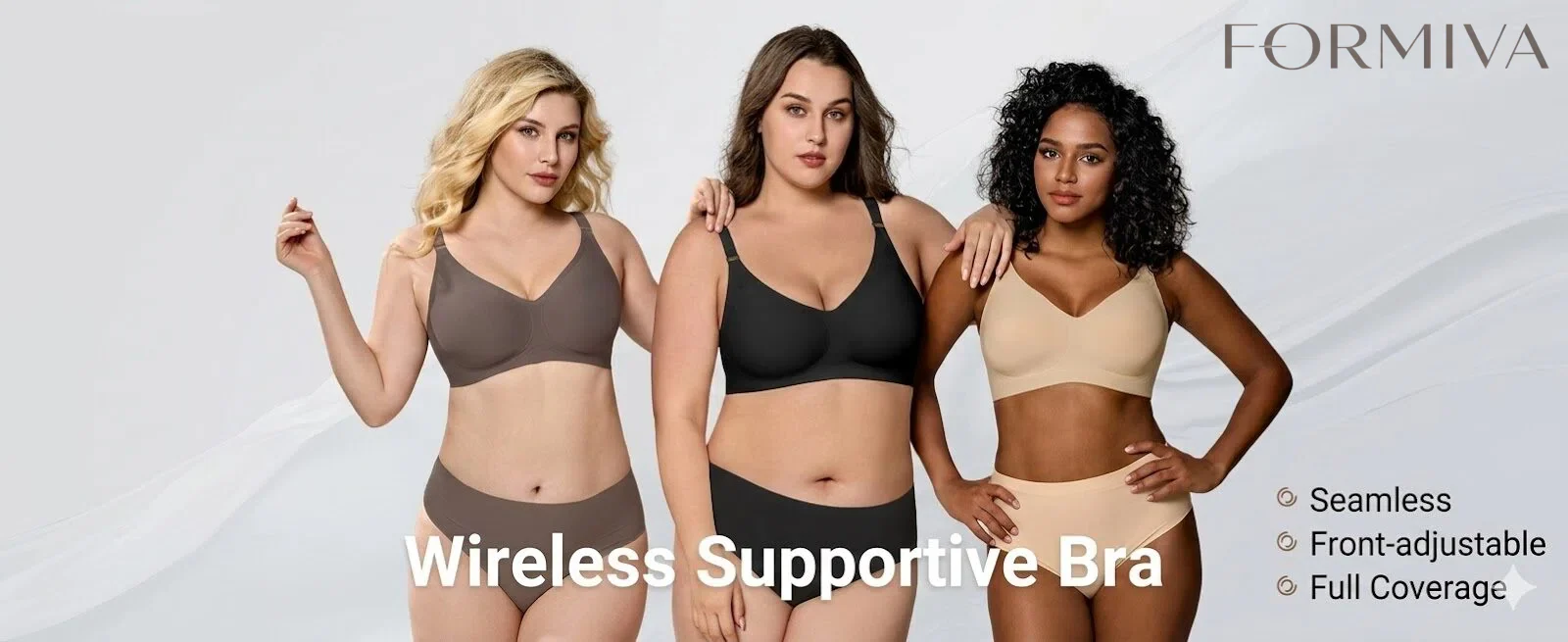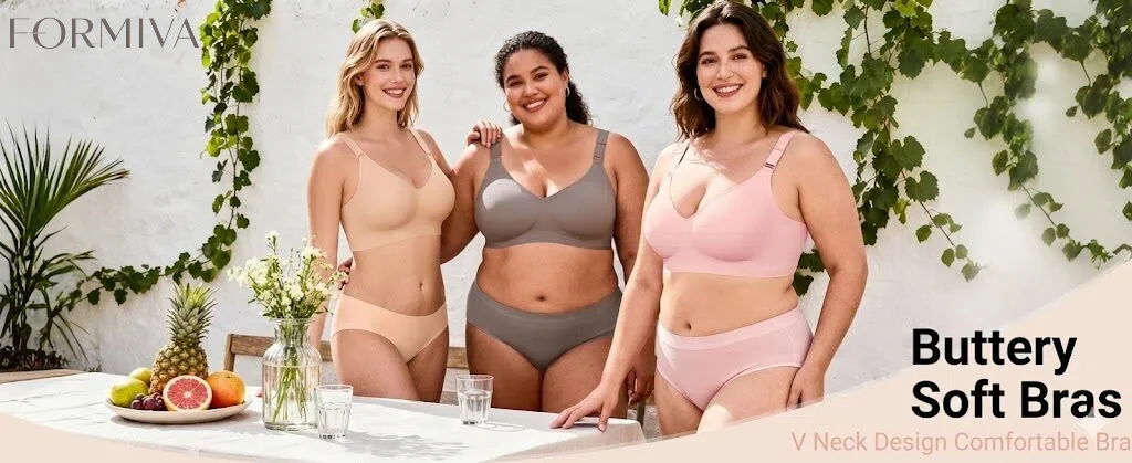 Formiva V Neck No Underwire Bras for Women with Support and Lift Comfort Bra