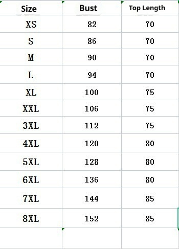 Sizes: XS, S, M, L, XL, XXL, XXXL, XXXXL, 5XL, 6XL, 7XL, 8XL