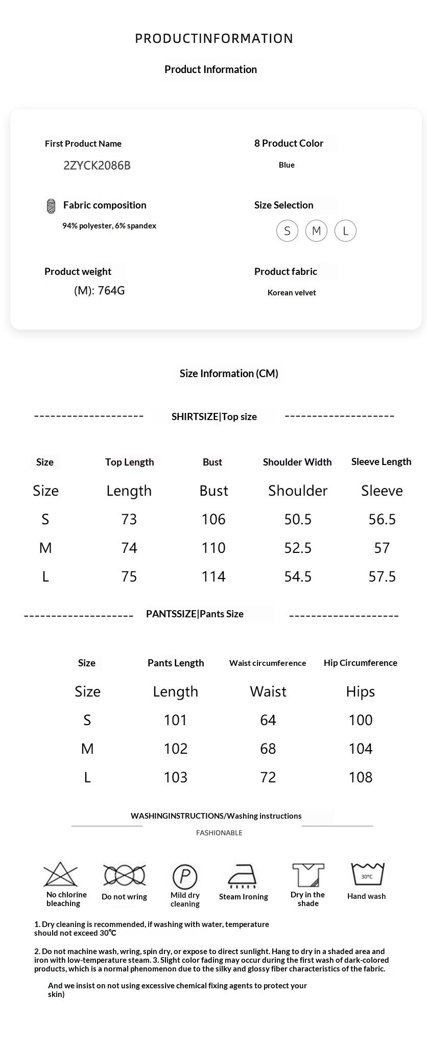 Sizes: S, M, L