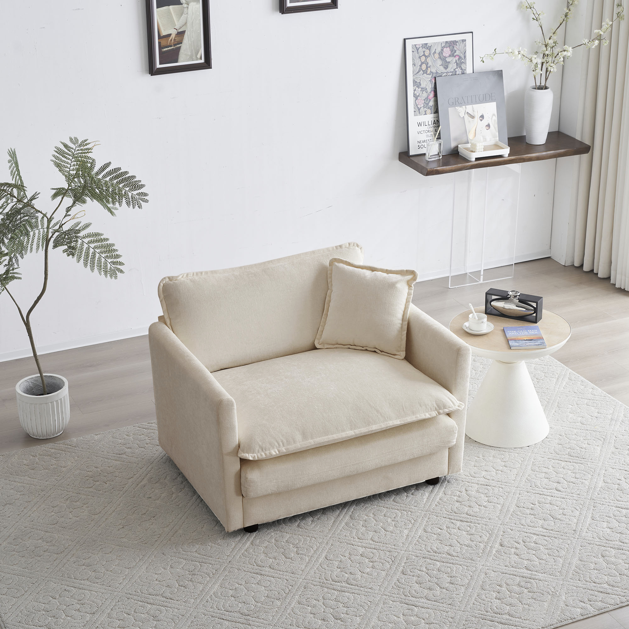 Product Name:Comfy Deep Single Seat Sofa upholstered Reading Armchair Living Room Chair Beige Chenille Fabric , 1 Toss Pillow