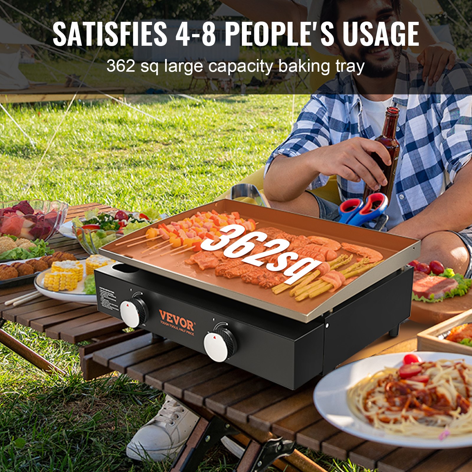 Spacious Cooking Surface: With a cooking surface of 362 square inches, this griddle flat top grill provides ample space for cooking a variety of foods at the same time, such as eggs, hamburgers, hot dogs, sausages, bacon, and pancakes. It can also cook multiple dishes at once, satisfying the needs of your family and friends.