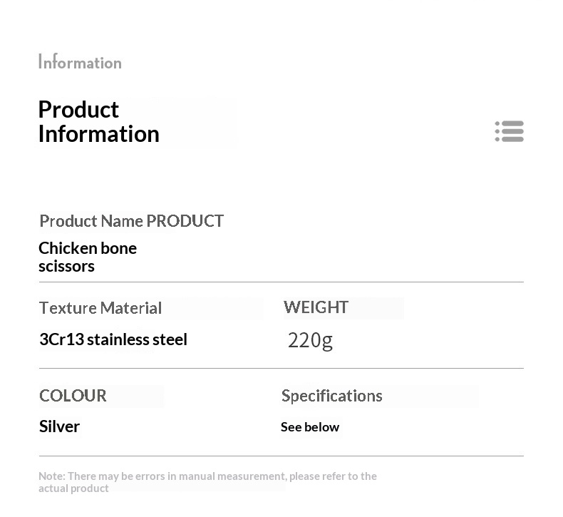 Product information:Specifications: Silver; Black Material: 3CR13 Style: Modern Minimalist