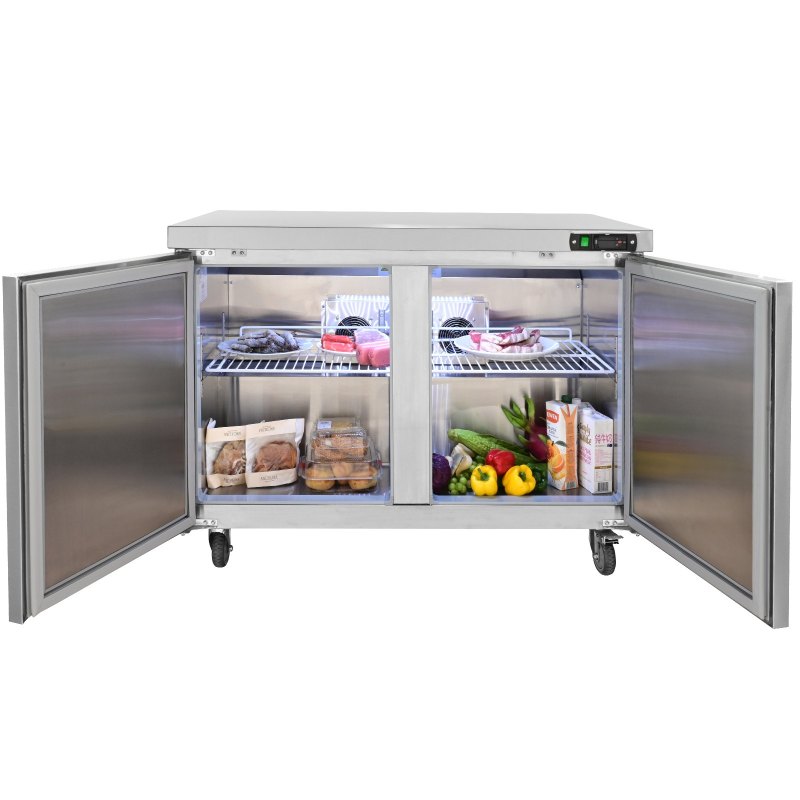 Fast Cooling: This sandwich fridge comes with Embraco compressor and finned copper tubes that ensure a constant and uniform temperature for long-lasting food preservation. With ETL Listed and ETL SANITATION Listed, the cabinet door is filled with insulation foam layer, automatically closing within 75° opening angle without hand pushing, enhancing food preservation and energy saving.