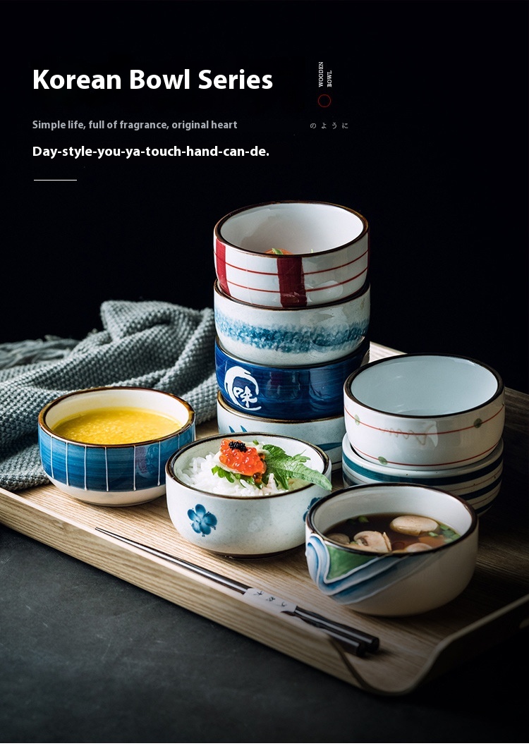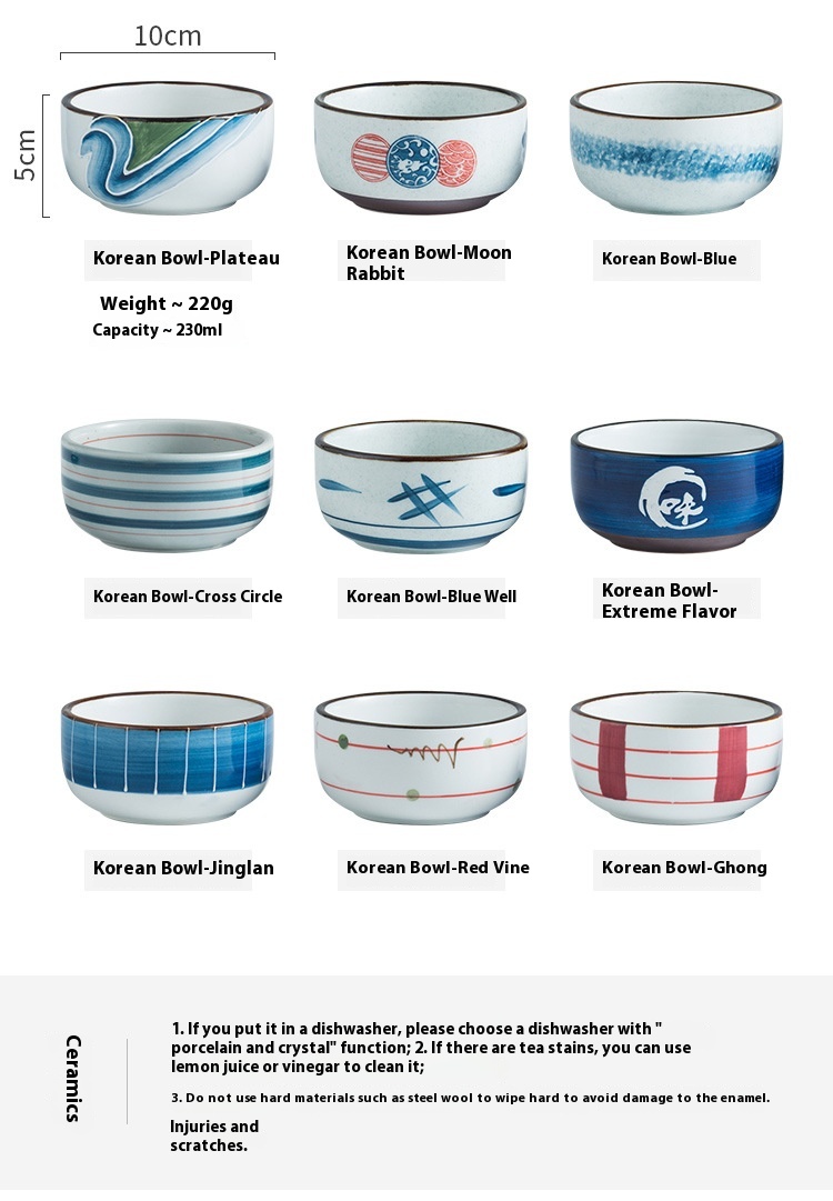 Color: Korean style bowl-plateau, Korean style bowl-Moon Rabbit, Korean style bowl-wave blue, Korean style bowl-cross circle, Korean style bowl-Blue well, Korean style bowl-extreme flavor, Korean style bowl-scene Blue, Korean style bowl-red rattan, Korean style bowl-plaid red