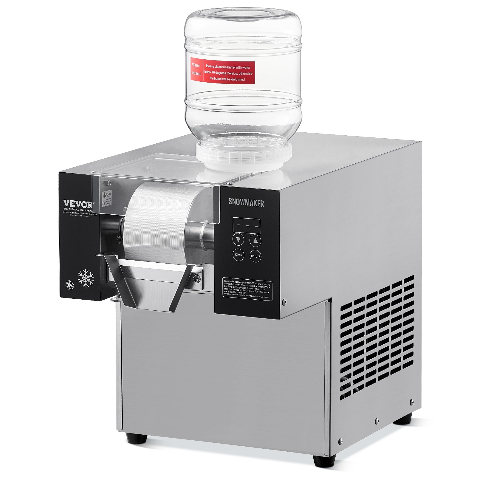 Efficient, Continuous Ice Production: The commercial snowflake ice machine features a high-performance compressor and a stable air-cooling system that rapidly dissipates heat, enhancing production efficiency. It achieves quick cooling in 40 seconds and produces ice in just 3 seconds after pre-cooling, capable of producing approximately 176.4 lbs / 80 kg of ice per day, ensuring efficient and continuous operation.