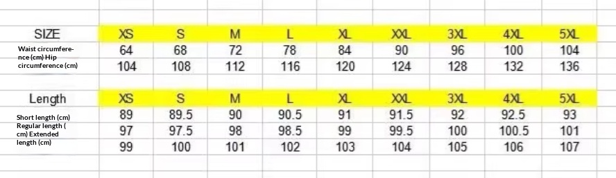 Sizes: XS, S, M, L, XL, XXL, XXXL, 4XL, 5XL