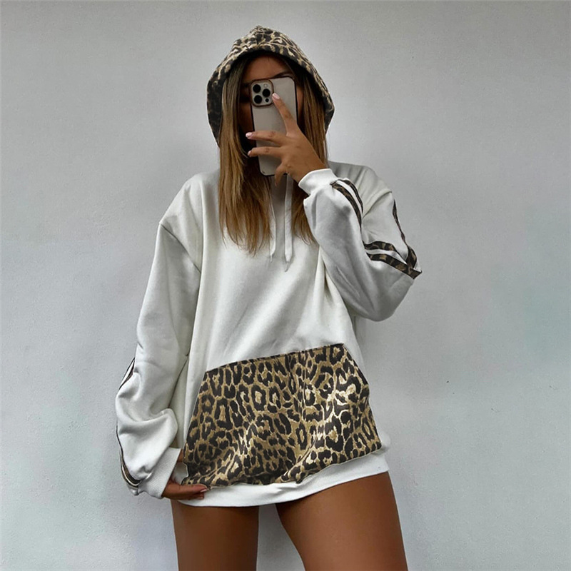 Commuter Hooded Leopard Print Multicolor Hoodie Women