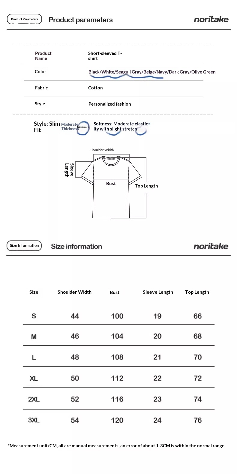 Sizes: S, M, L, XL, 2XL, 3XL.
