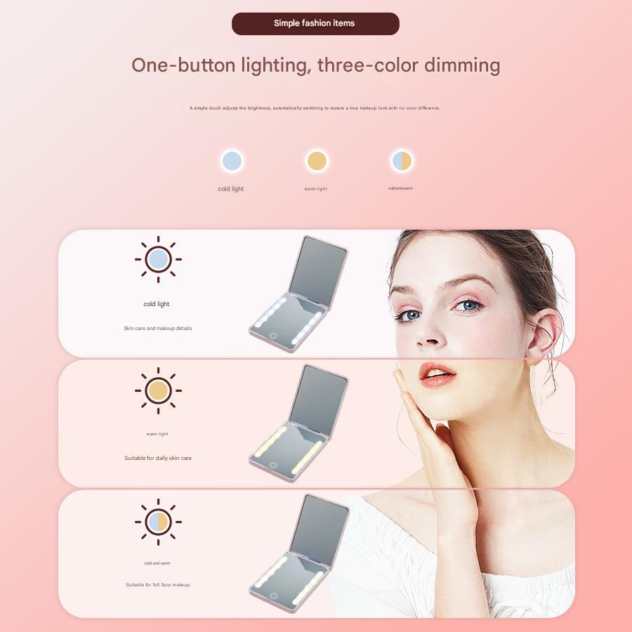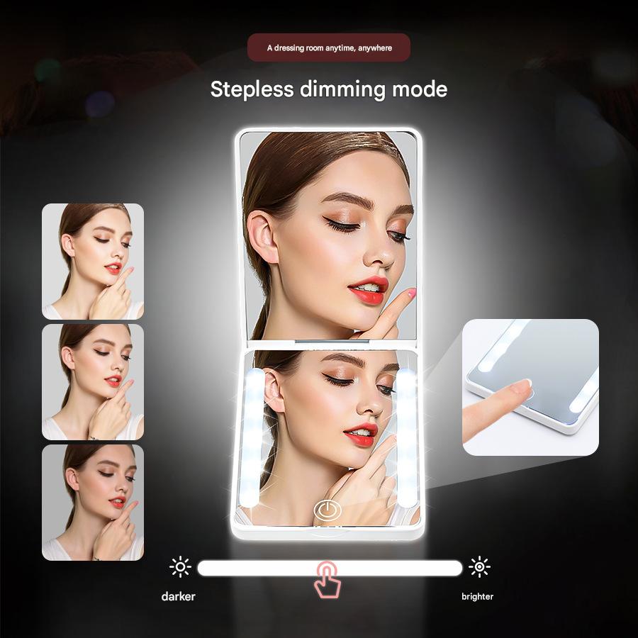 Compact Double-Sided Folding Makeup Mirror Handheld Portable LED Light For Touch-Ups