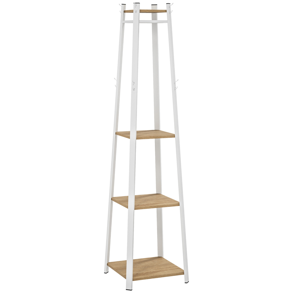 This clothes rack is a multi-feature design: with eight double hooks, three lower shelves and an upper shelf, it offers plenty of room for coats, bags, shoes and other accessories - all in one spot. The trapezium allows it to fit snug into corners, so it's perfect for smaller spaces throughout the home.