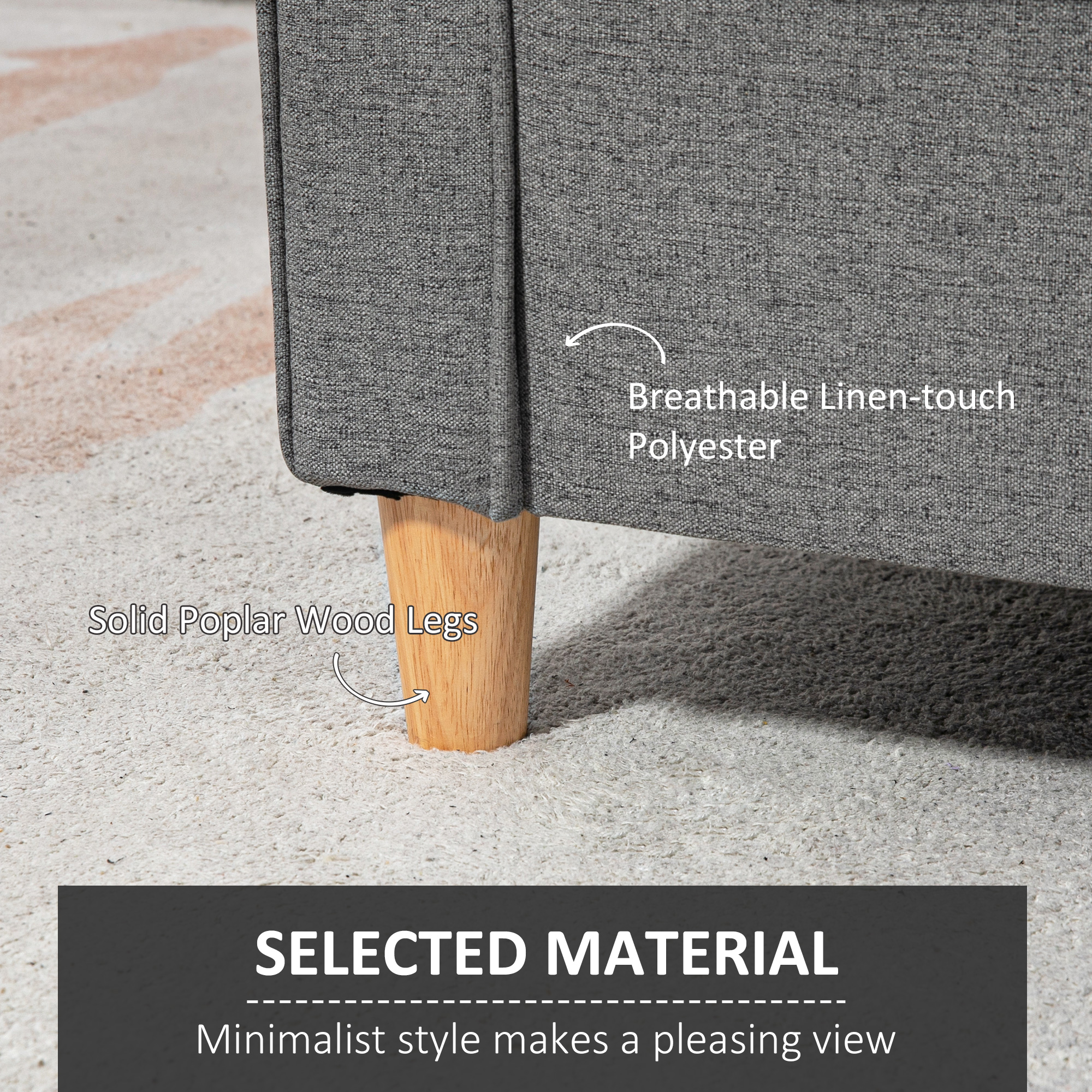 Compact Loveseat Sofa, Modern 2 Seater Sofa For Living Room With Wood Legs And Armrests, Grey