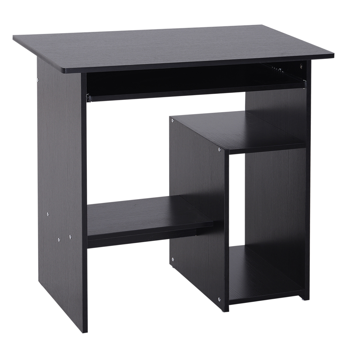 Transform your small space into a professional home office with this compact computer desk, designed for efficiency and style. Crafted from thick particle board with a sleek finish, it offers a spacious worktop, a slide-out keyboard tray, a CPU stand, and two open storage shelves, maximizing functionality without compromising on space. The smooth, non-scratch melamine surface ensures easy maintenance. Perfect for creating a productive environment in any corner of your home.