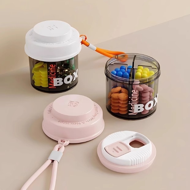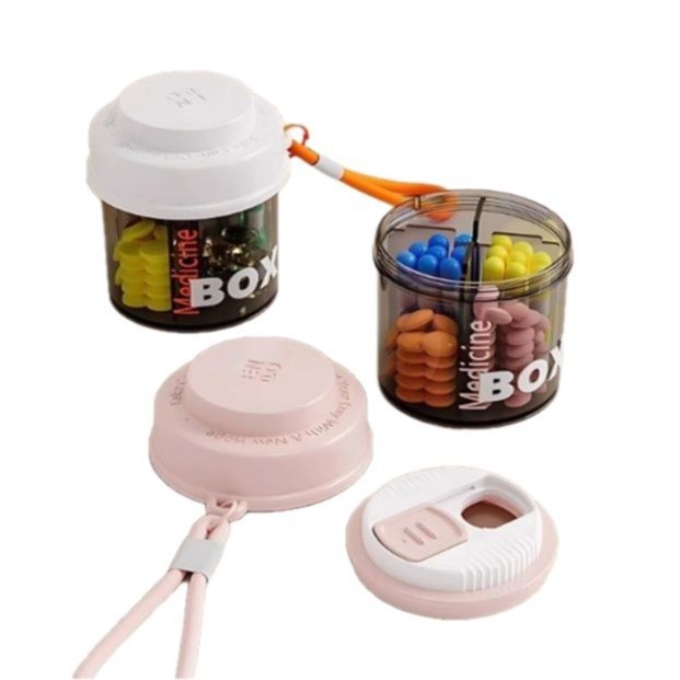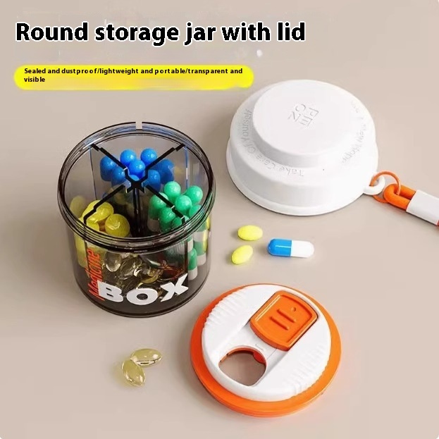 Compartment Round Pill Box Portable Four Divided Storage Box Sealed