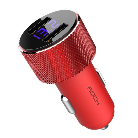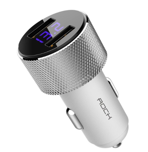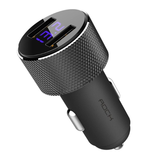 Compatible ROCK 5V 3.4A Metal Dual USB Car Charger Digital Display Fast Charging Voltage Monitoring