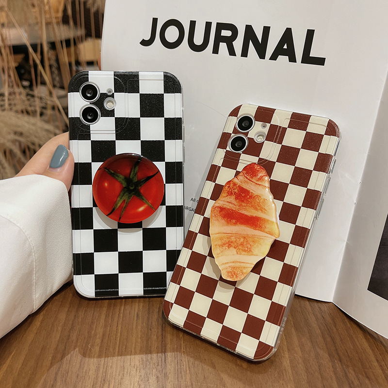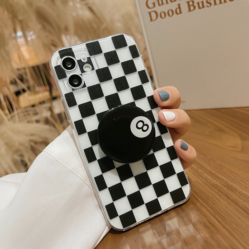 Compatible with Apple , Blue Checkerboard Flower Stand Phone Case Cover