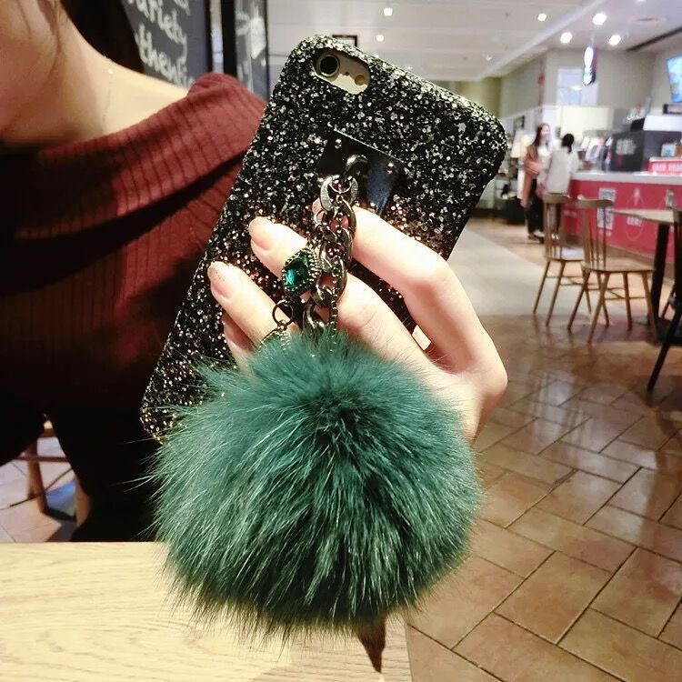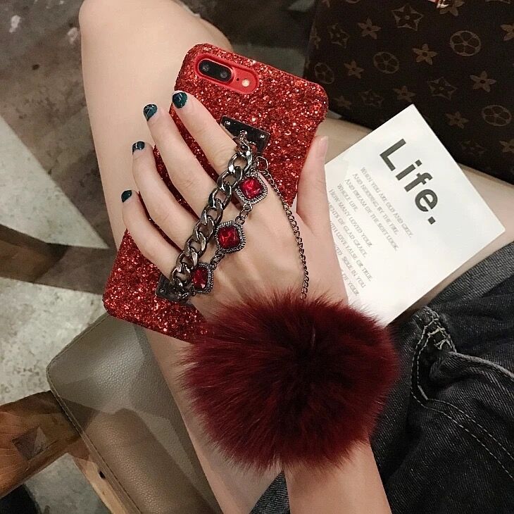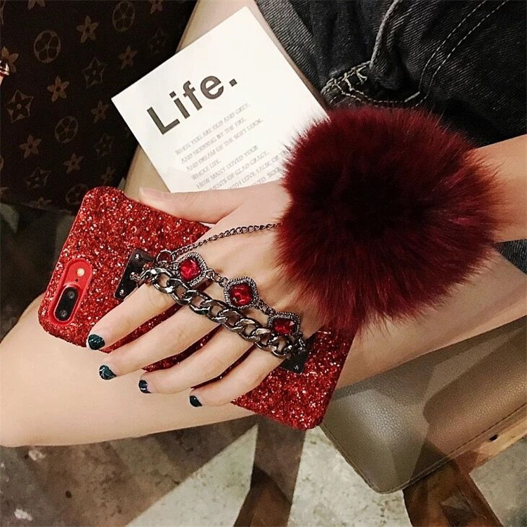 Product Category: Diamond Hair Ball Bracelet Phone Case