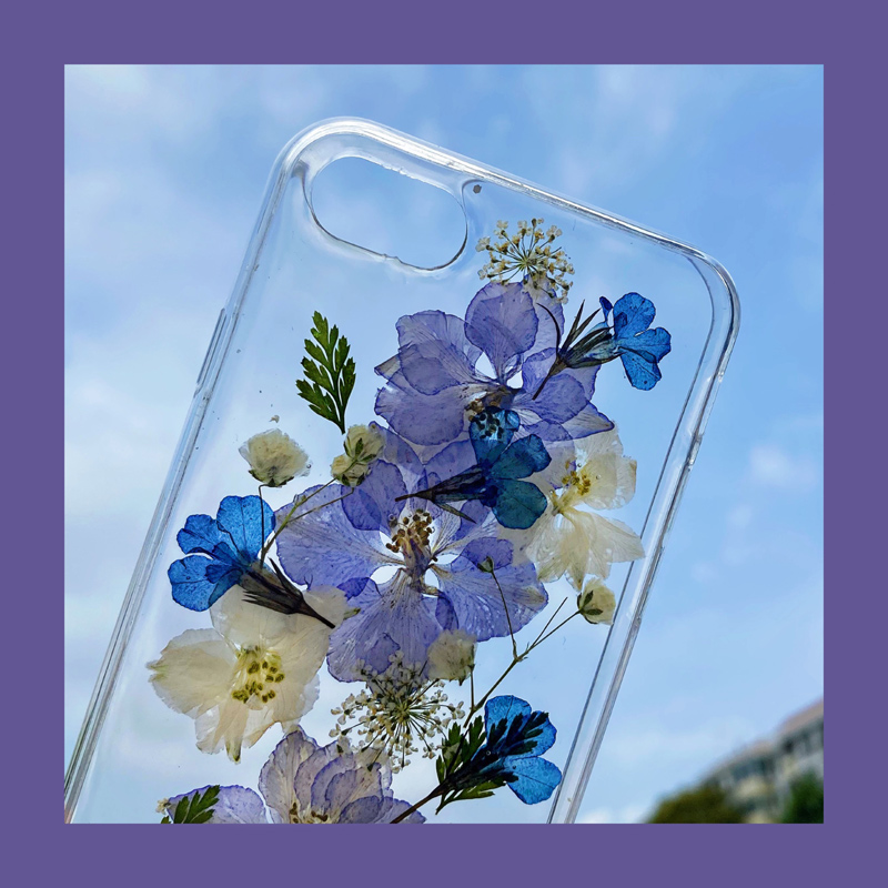Model: transparent protective cover of drop glue Narcissus and purple dew flowers
