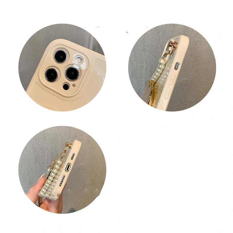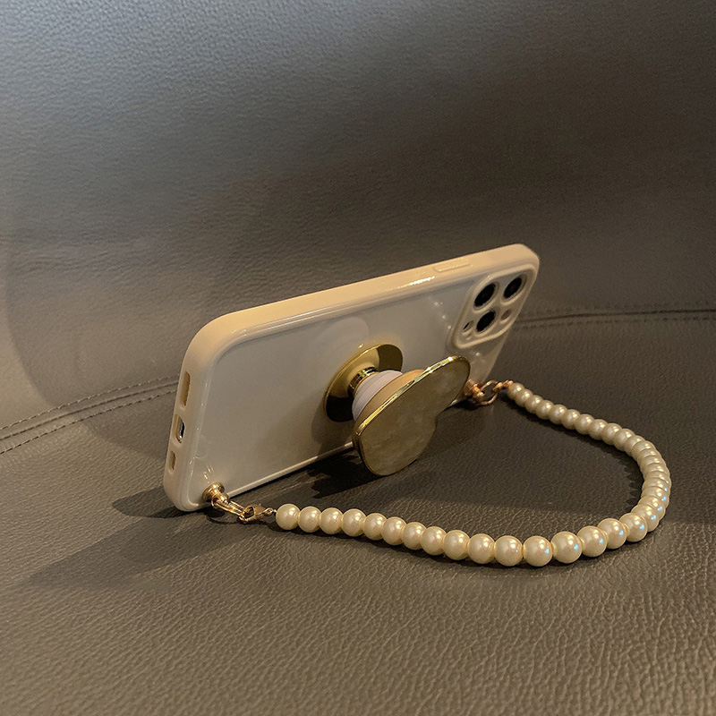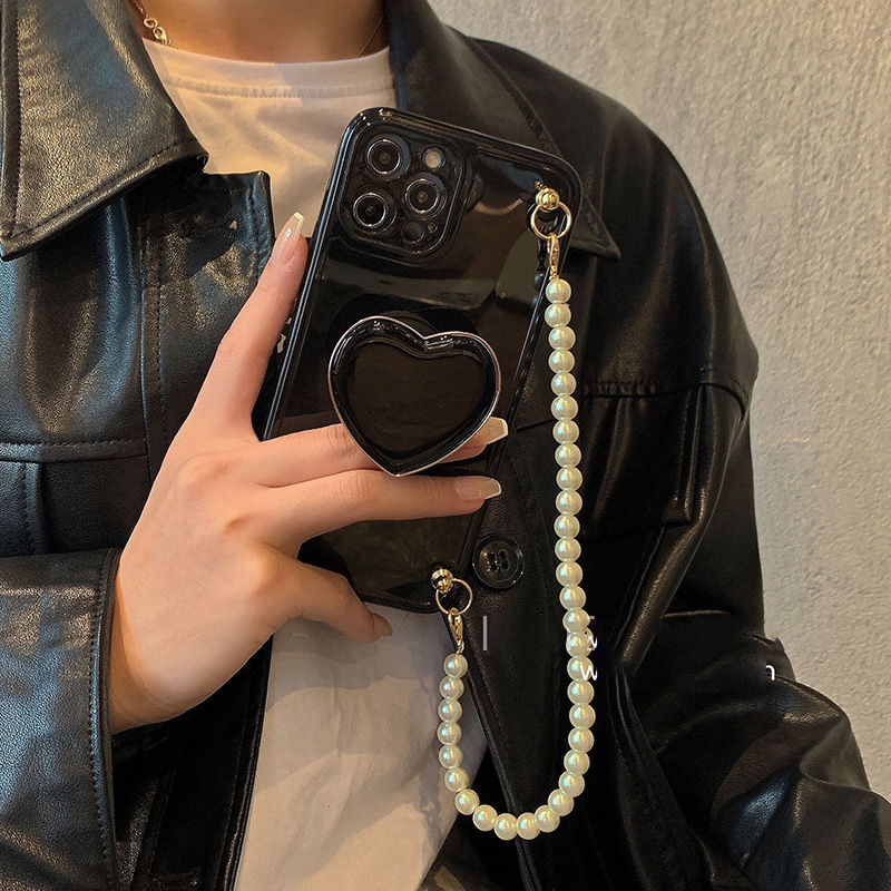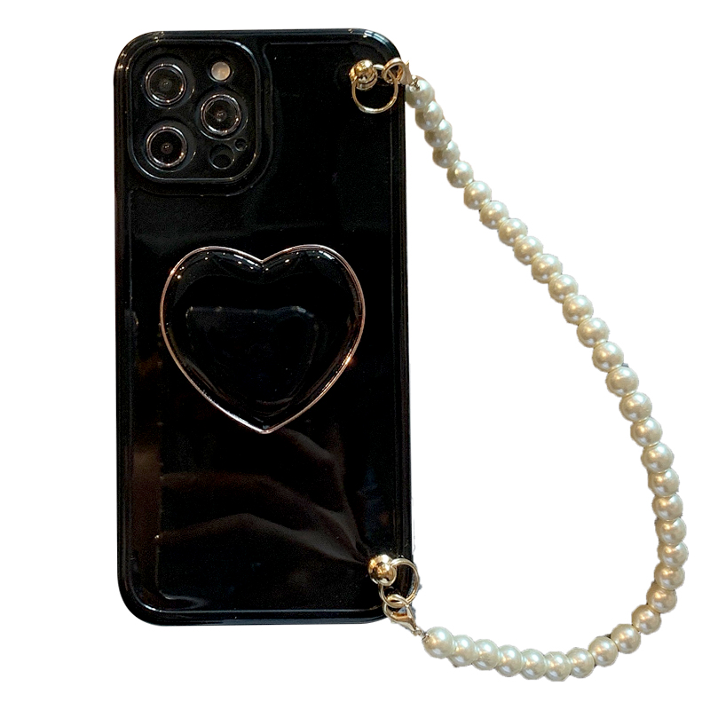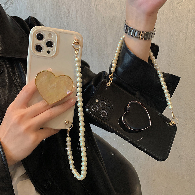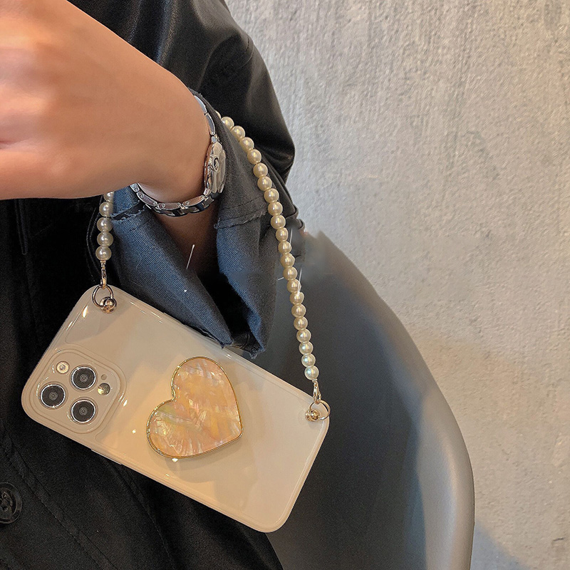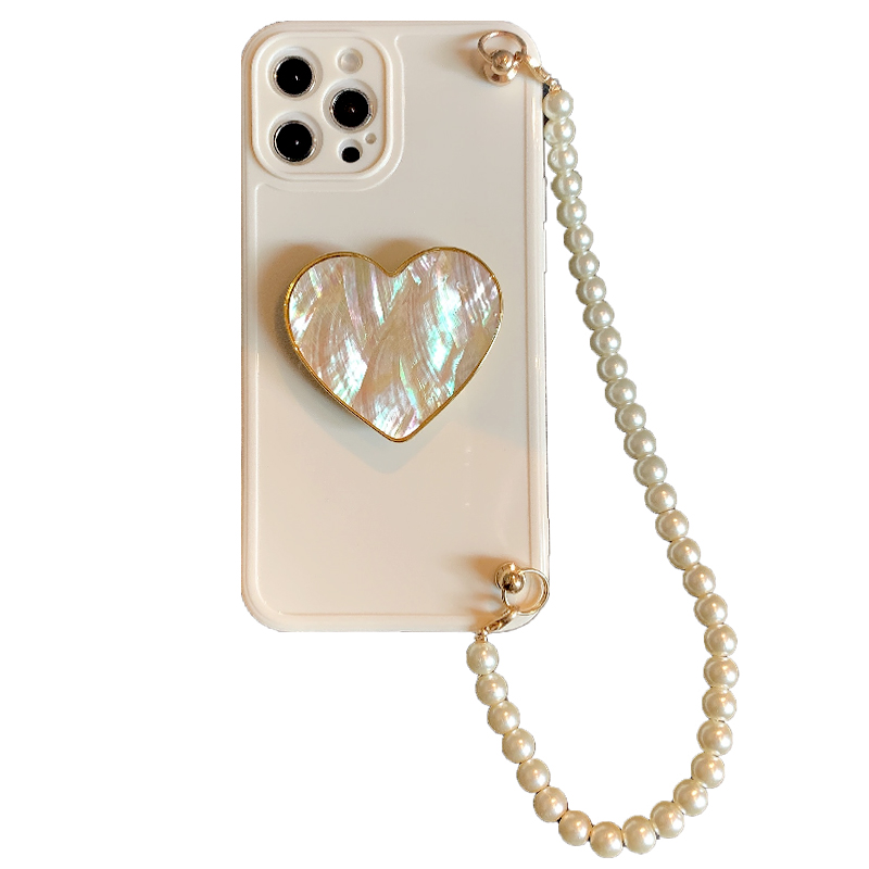 Model: Pure Color Shell Pearl Chain Wristband Love Heart Bracket Protective Case