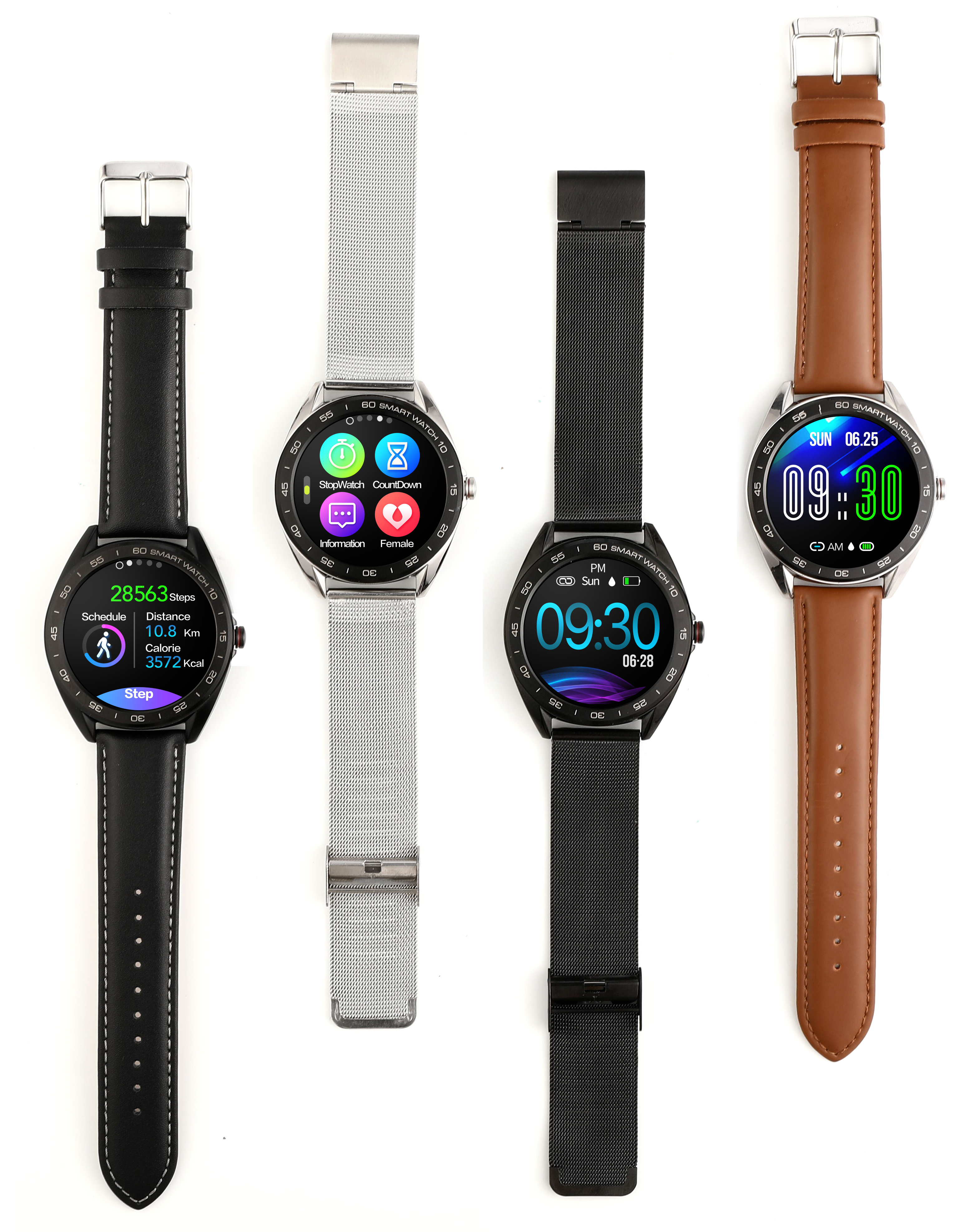 Time display, step counting, calories, distance, heart rate, blood pressure, sleep time, switch display, stopwatch