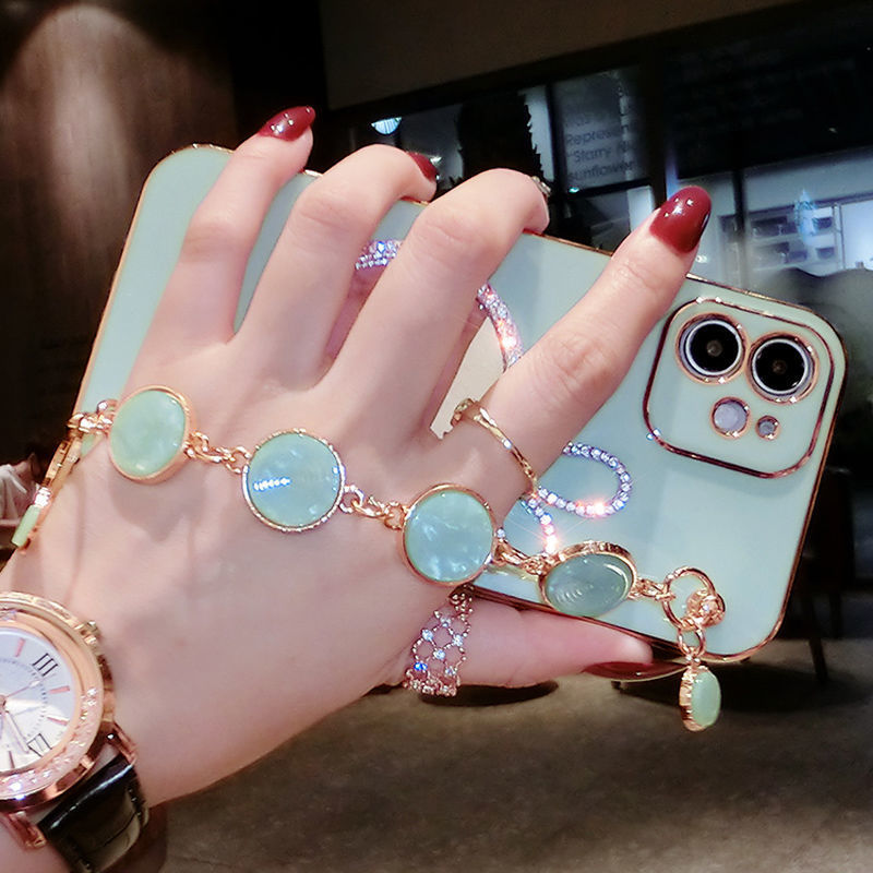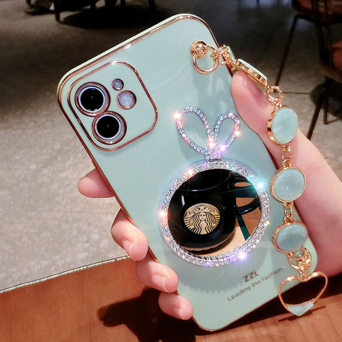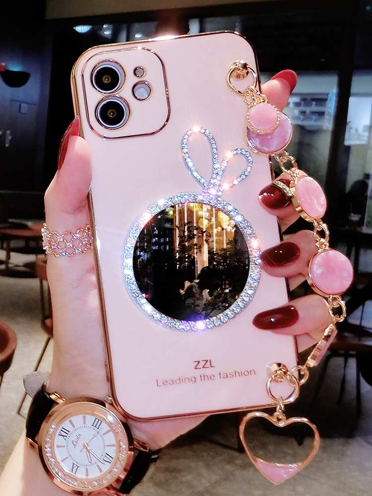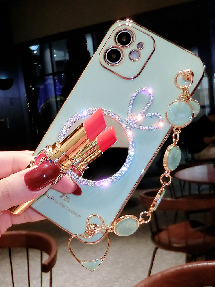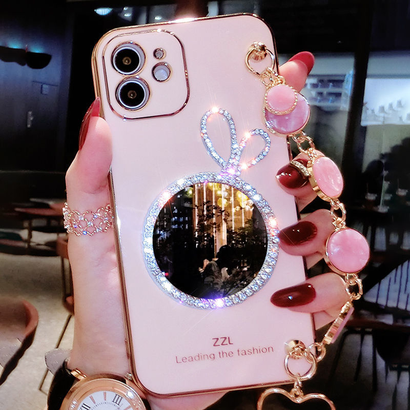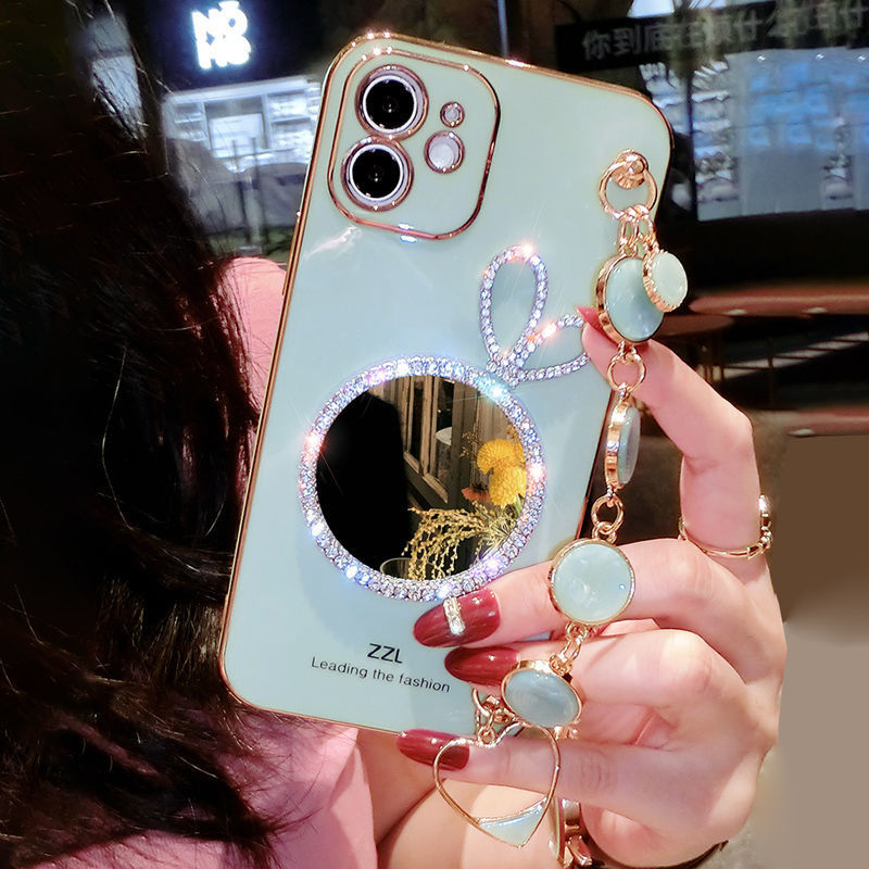 Color: rabbit mirror + gem chain (sapphire green), rabbit mirror + gem chain (pink)