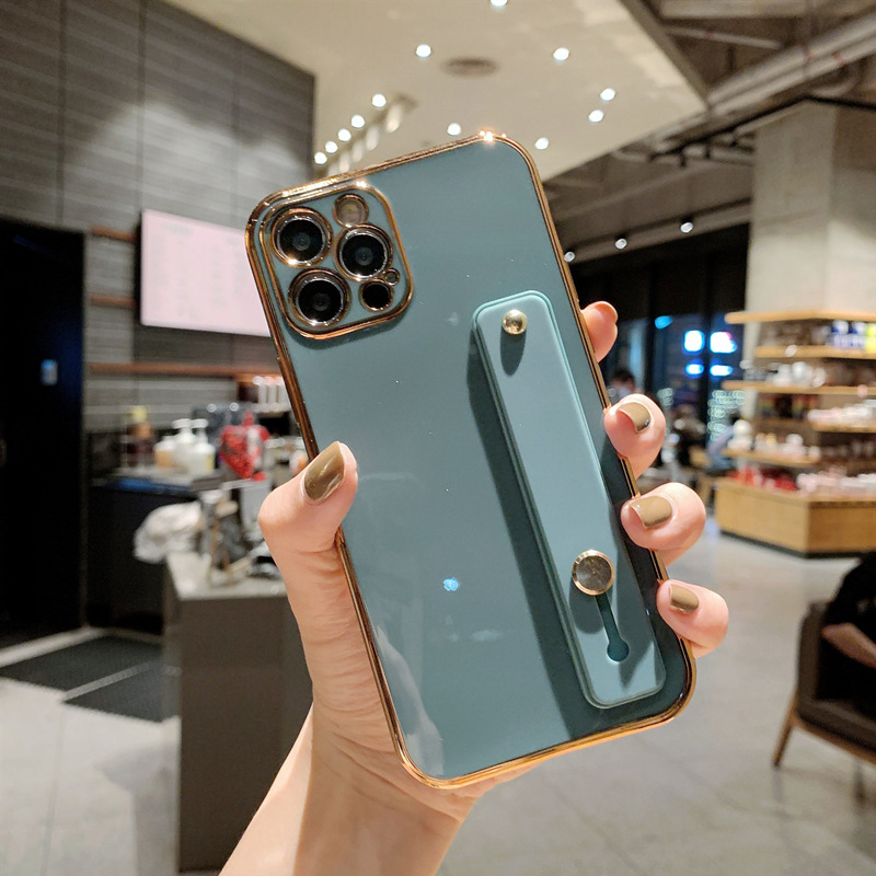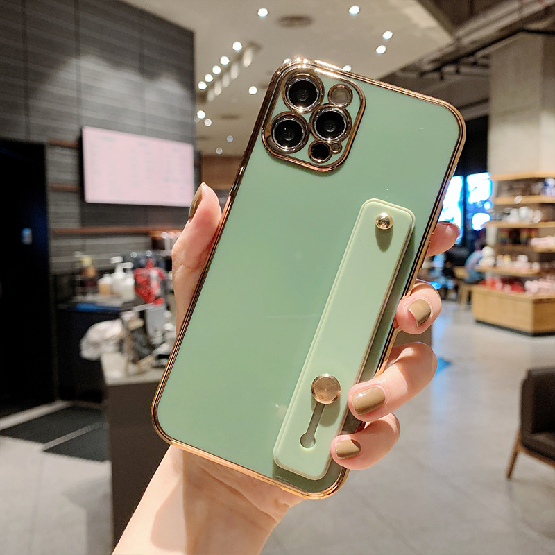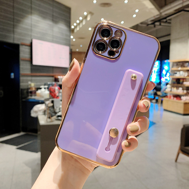 Compatible with Apple , Straight Edge All-inclusive Wrist Strap Phone Case 6D Electroplating Soft