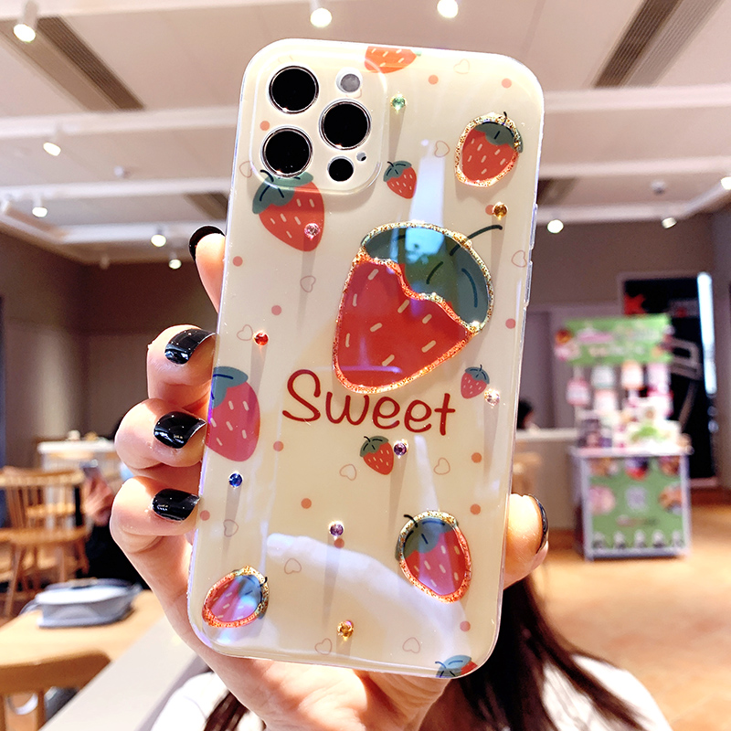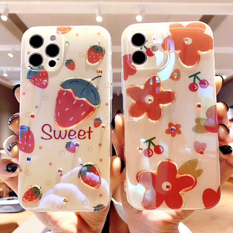 Strawberry floret is suitable for 12pro apple 12 mobile phone case iPhone11 protective cover xsmax fruit cherry xr summer fresh x Blu-ray 2021 new 7plus all-inclusive 8p anti-fall se women