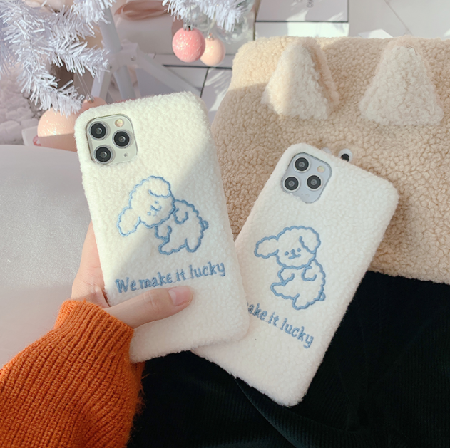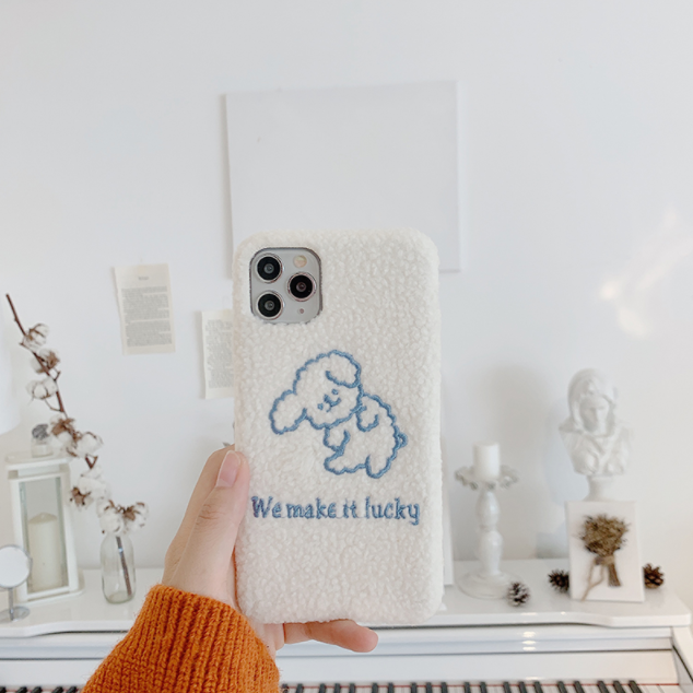 Color; embroidered plush shell blue thread puppy