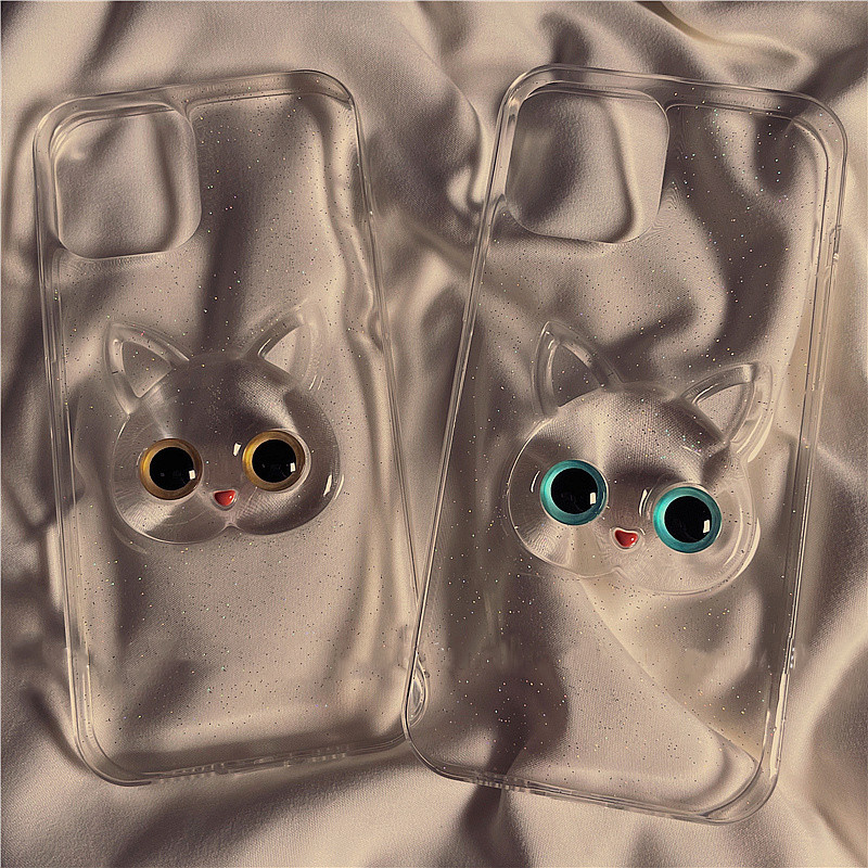 A: Apple 12 [Three-dimensional blue-eyed cat] Epoxy transparent ★ Free tempered film