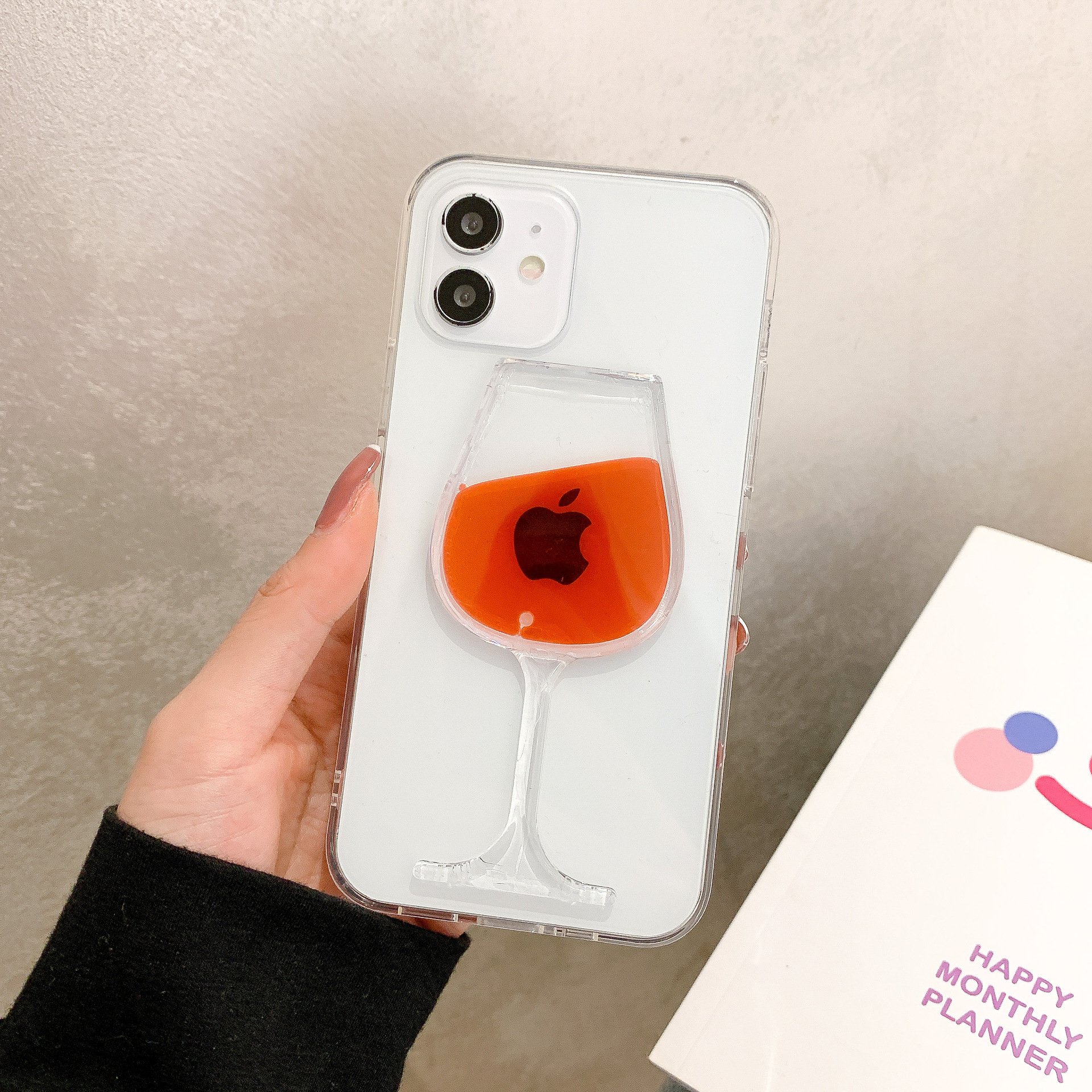 Compatible With Apple, 3D Hot Red Wine Liquid Glass Lips Transparent Sand Transparent Phone Case Cover