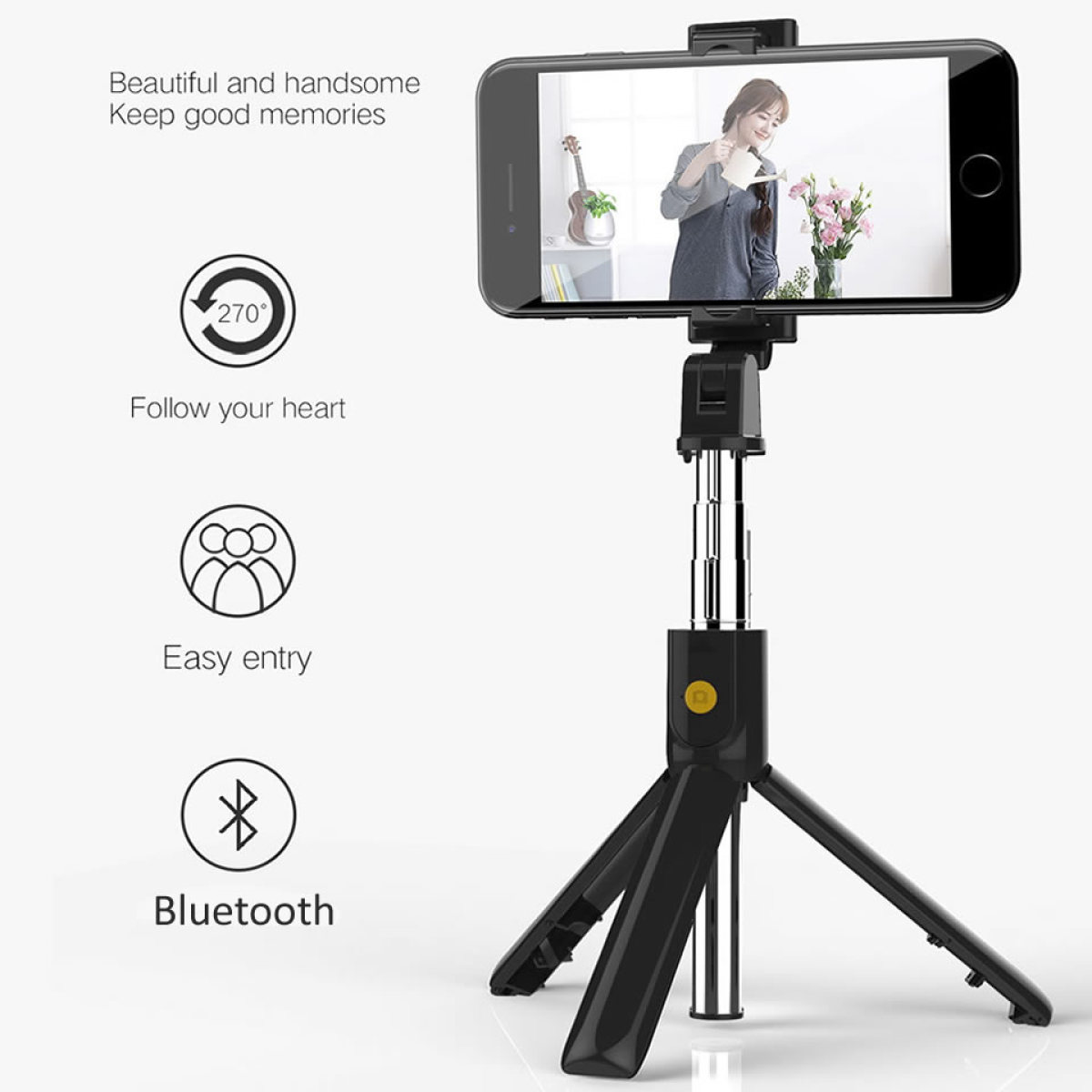 Wireless Bluetooth 3 in 1 Selfie Stick for iPhone / Android / Huawei Foldable Portable Monopod Shutter