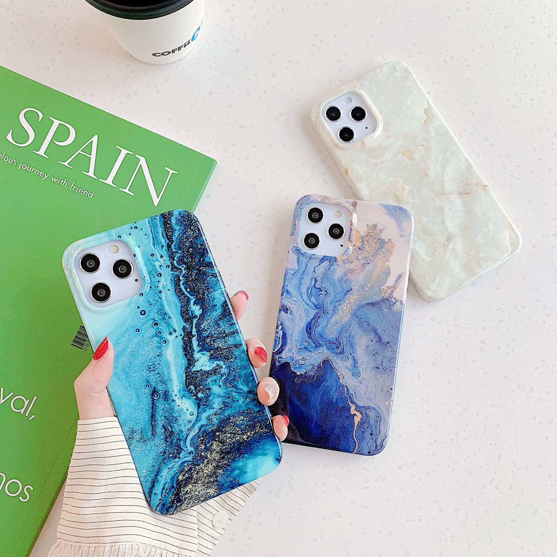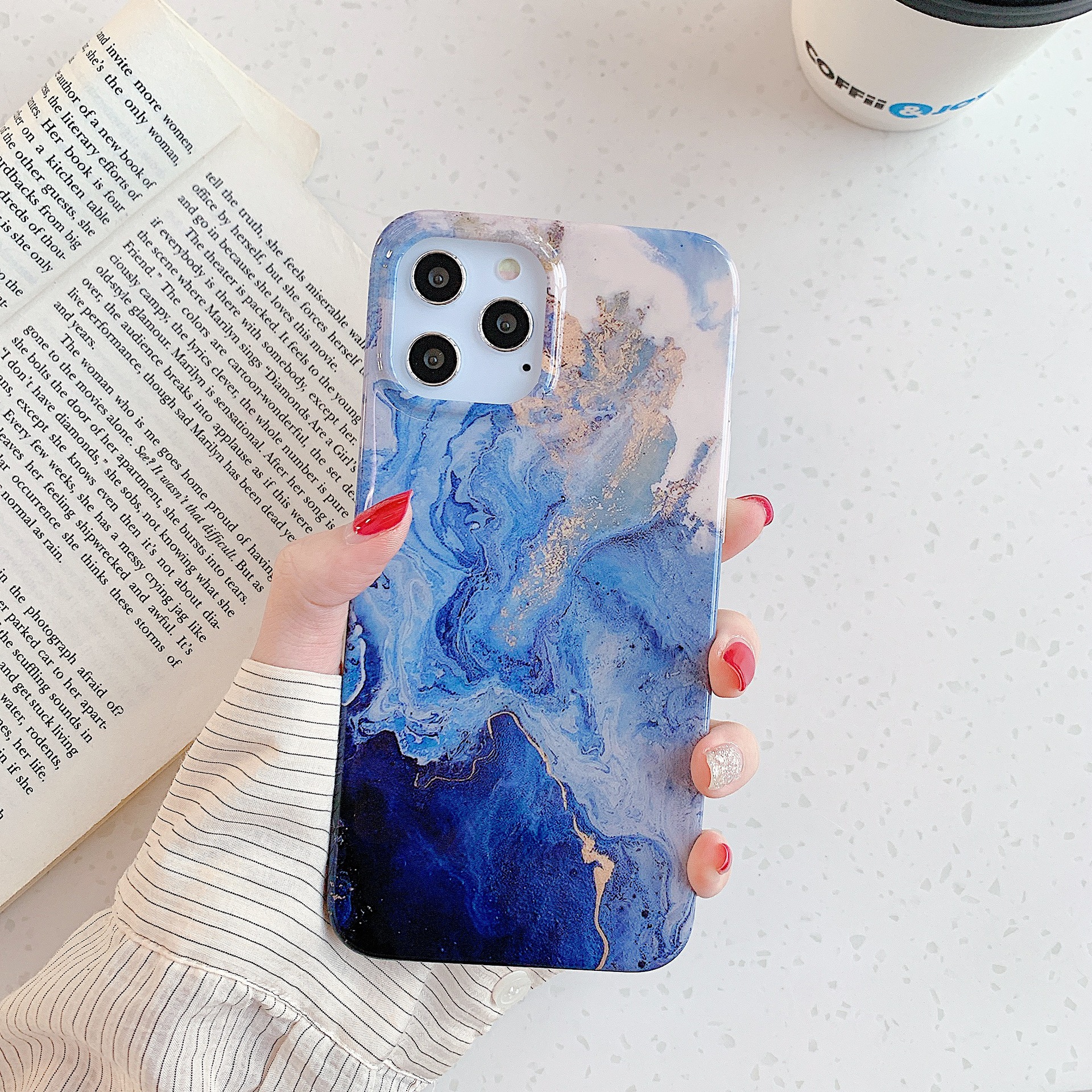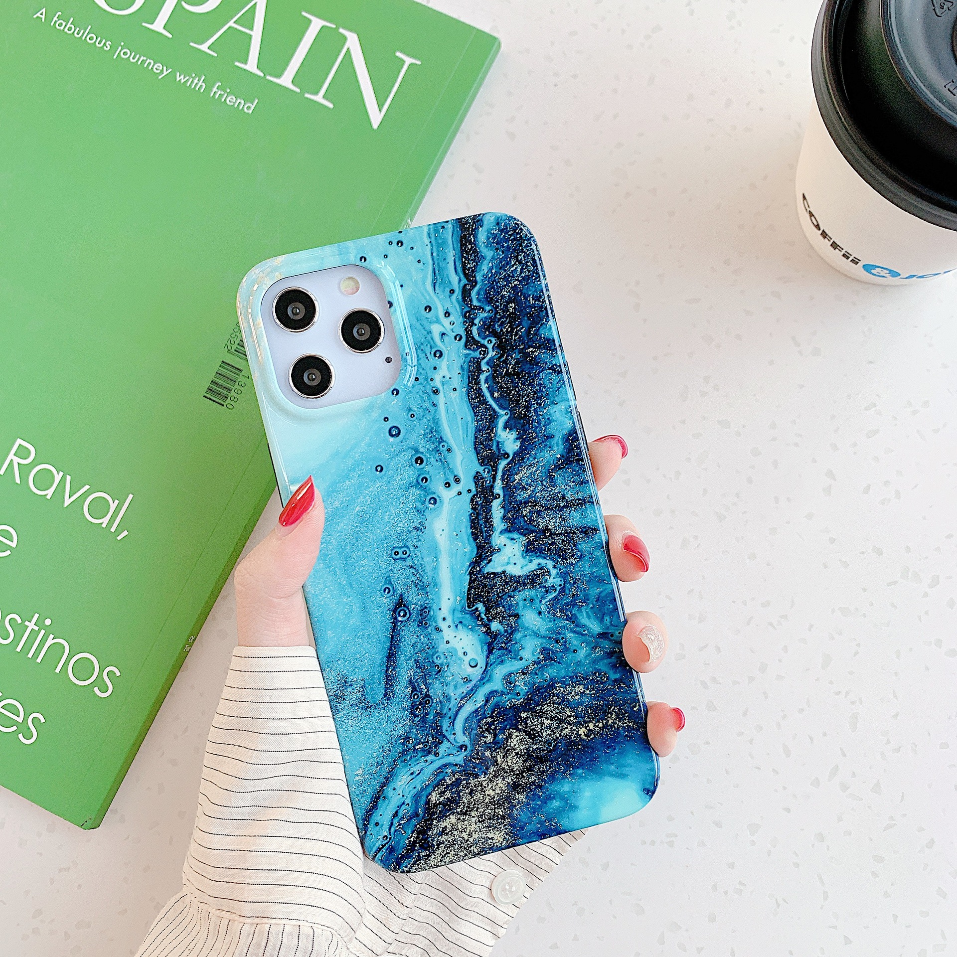 Blue Gold marbling for Apple 12 case iPhone 11pro / max / X / SE silicone case XR