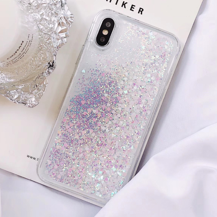 Compatible with Apple, Compatible with Apple , Fashion Samsung Love Stars Sequins White Flashing Sands Full Soft Applicable iphone Material Mobile Shell