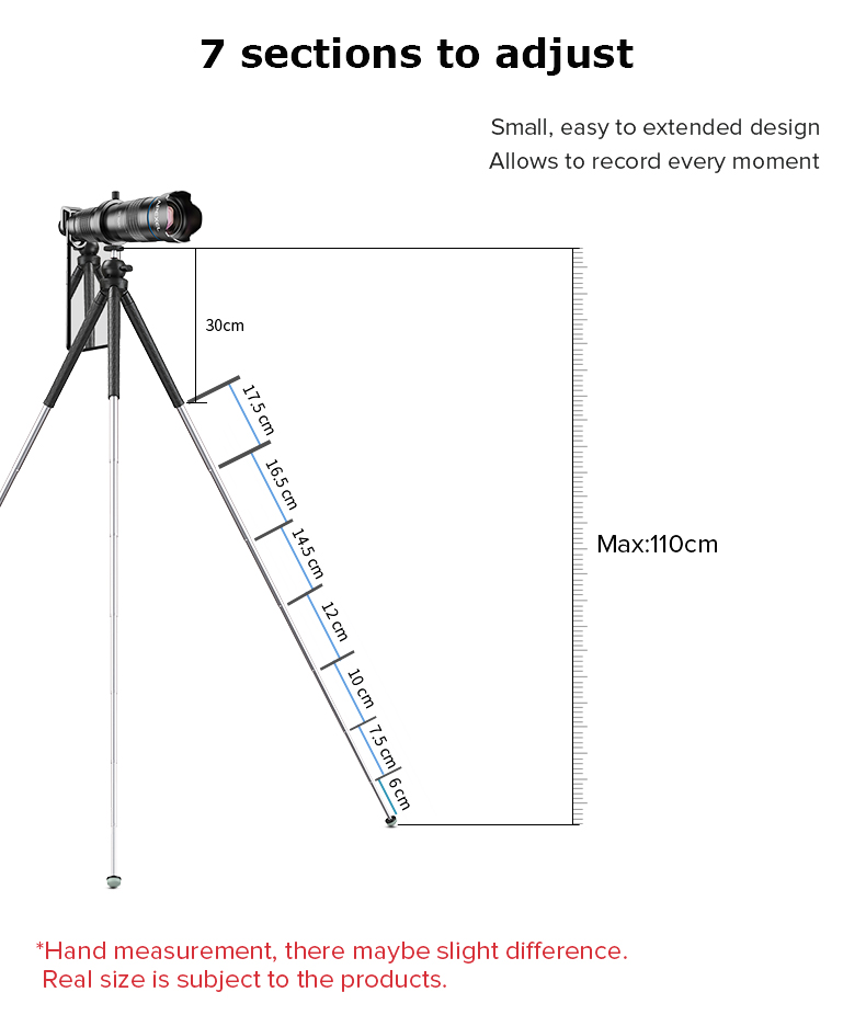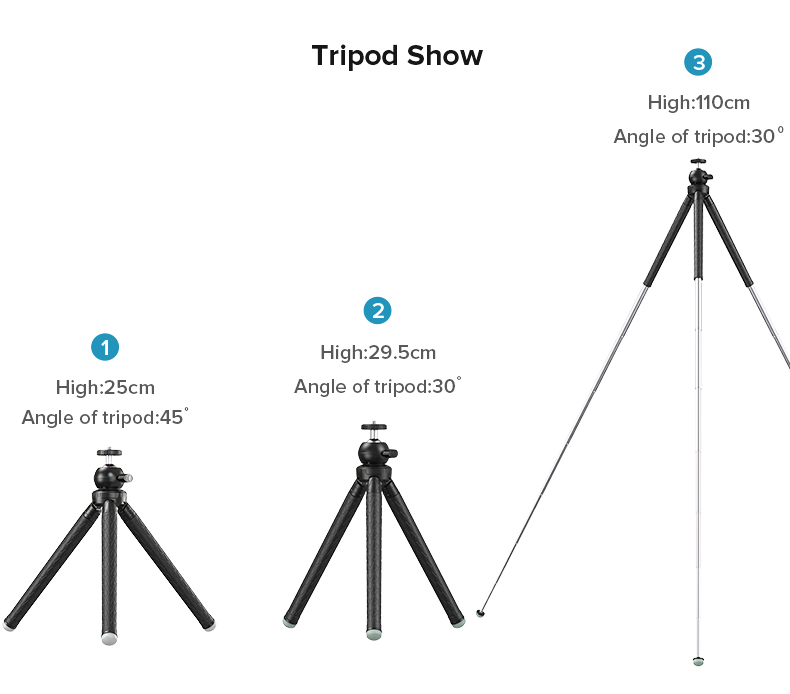 1. The 7-segment foot tube can quickly collect and spend, the total length can reach 110CM, and the foot tube can quickly collect and spend, which is convenient to carry;