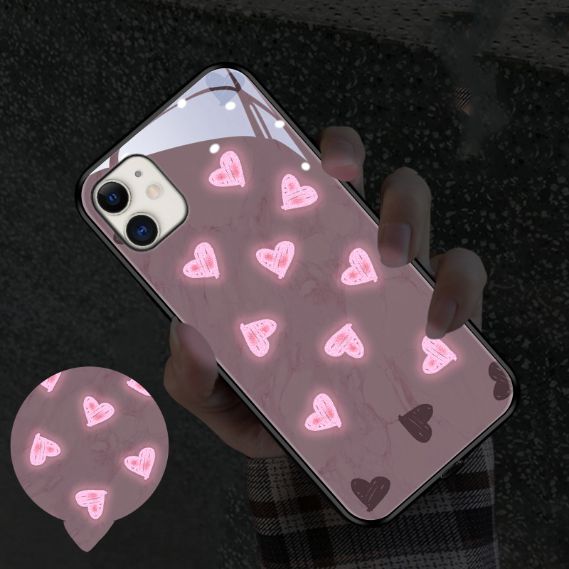 Compatible with Apple, Creative Love Iphone Luminous Glass Phone Case