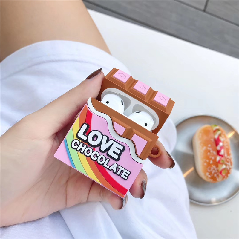 3D funny chocolate protective cover, suitable for Airpods 1/2 shell, soft silicone earphone cover, suitable for children/boys/teens with professional packaging of Airpods