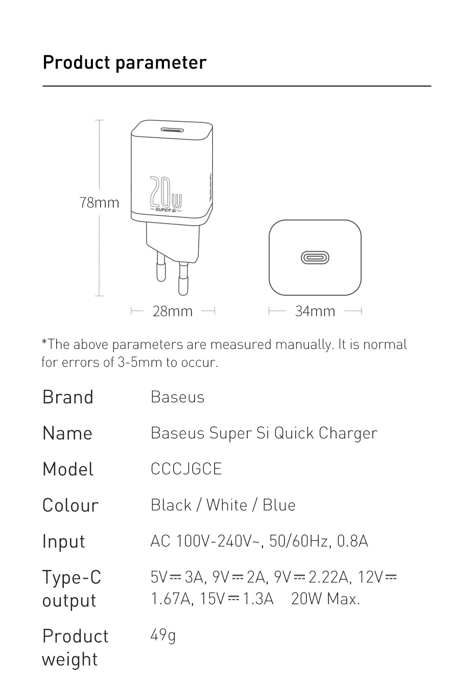 Model: Baseus Super Si Super Silicon Fast Charger