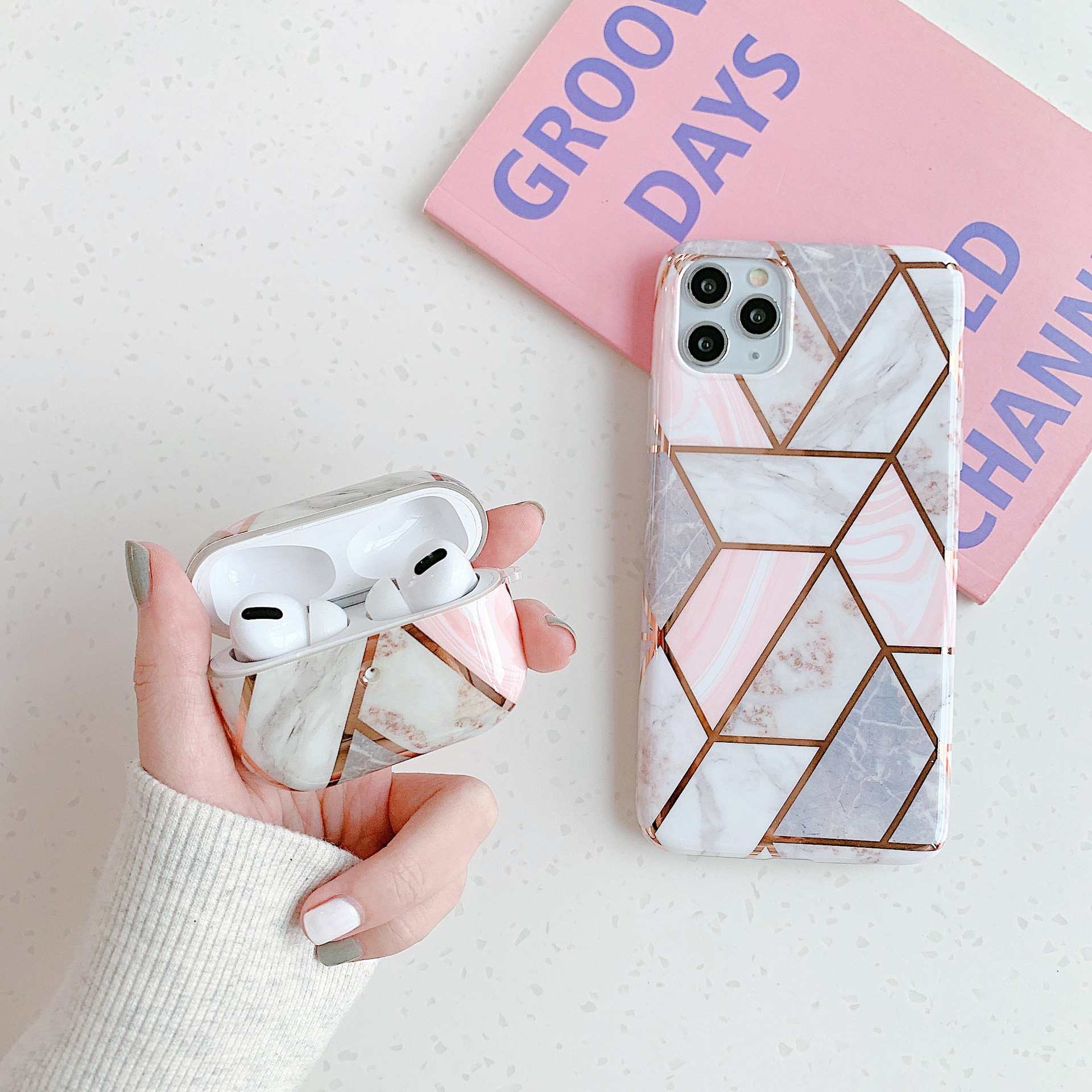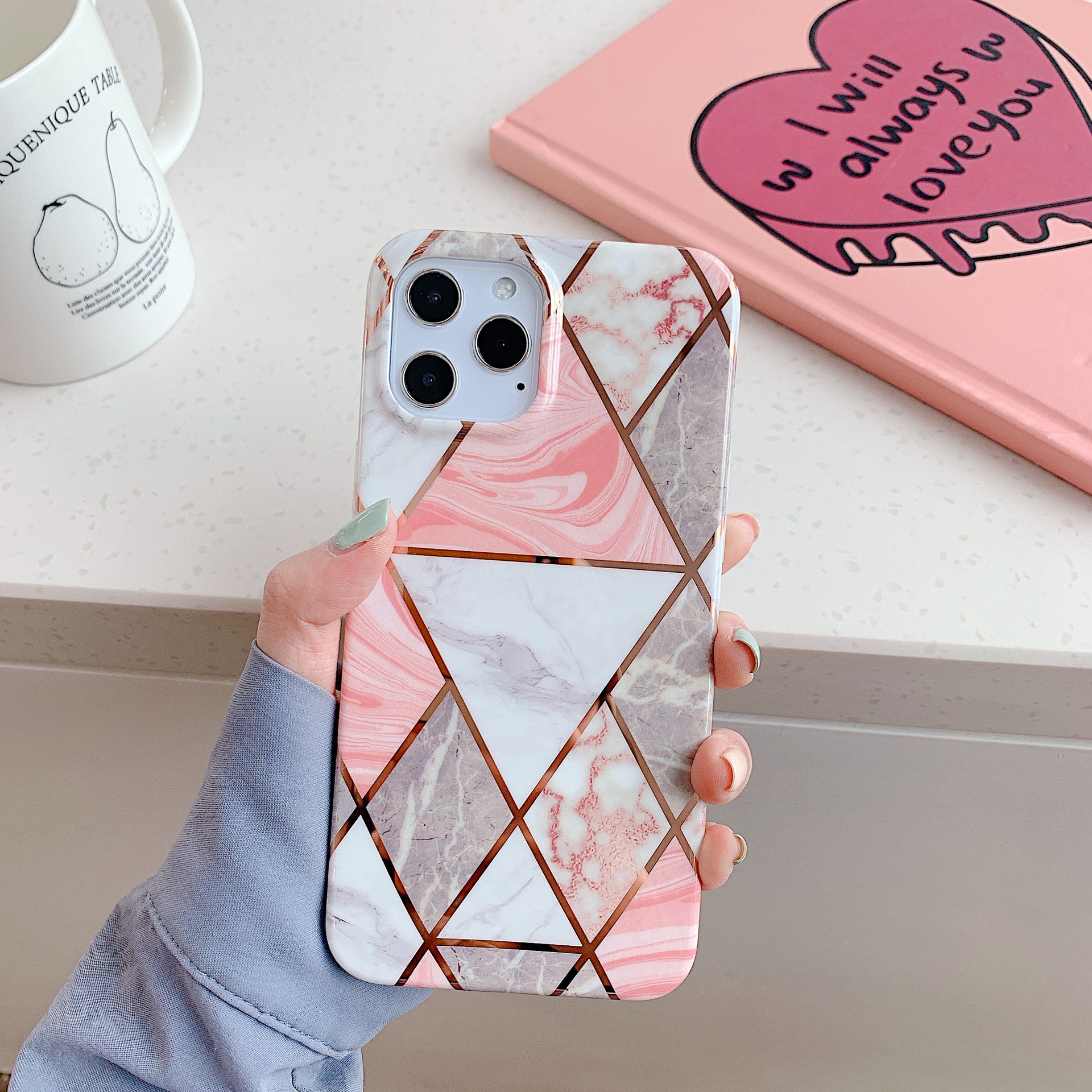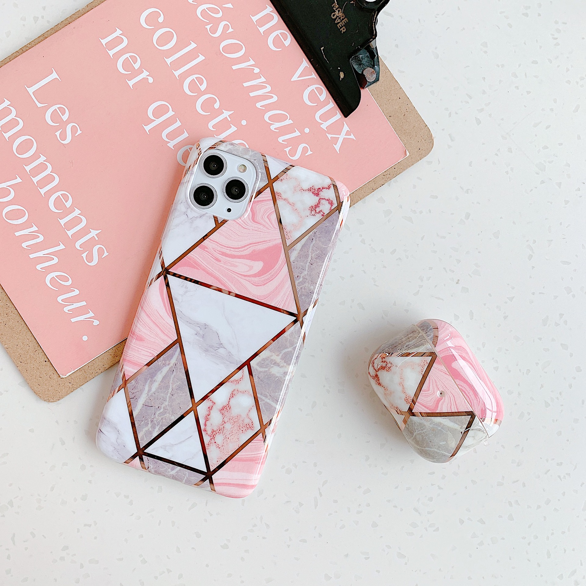 C: pink white gray bronzing triangle marble