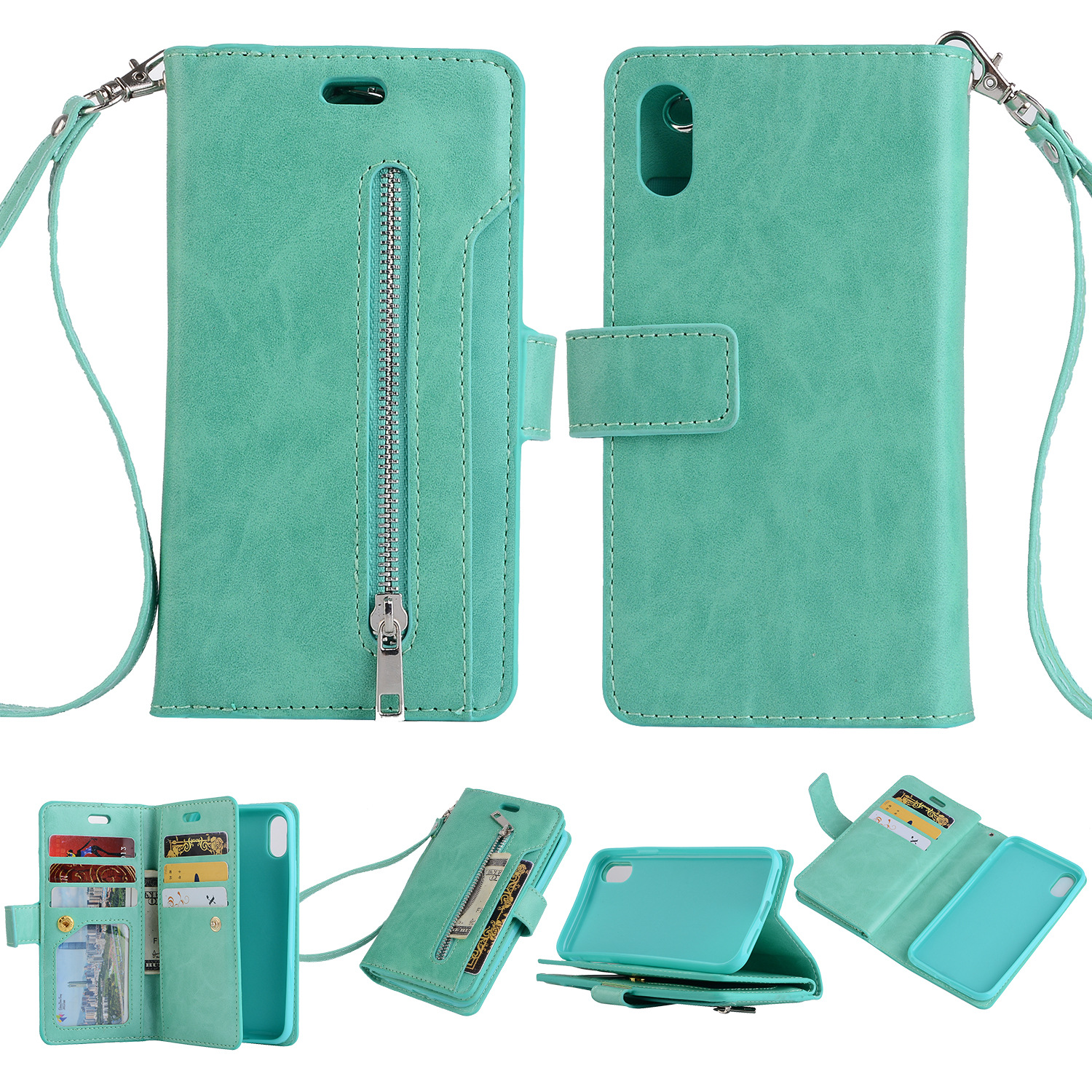 Compatible with Apple, For iPhone X Xr Xs Card Zipper Wallet