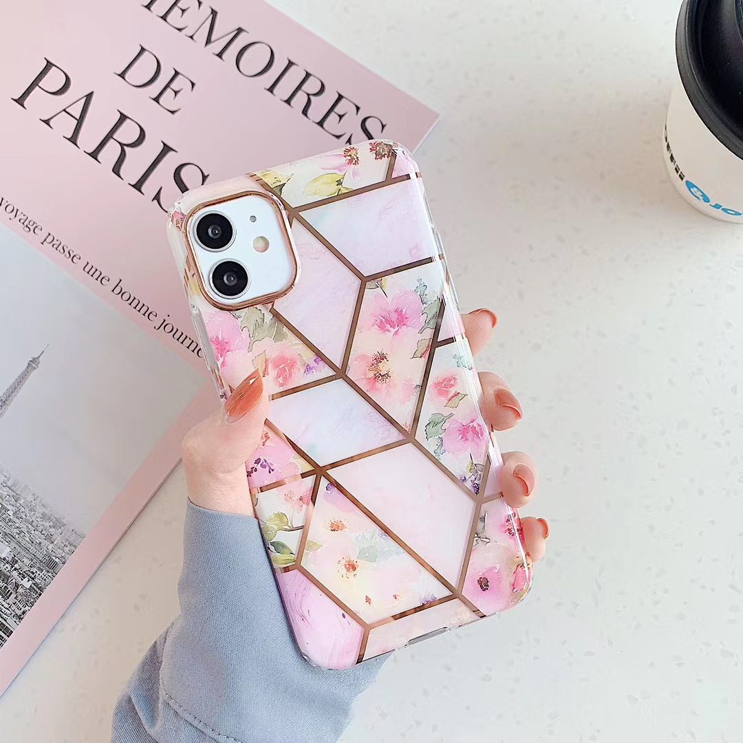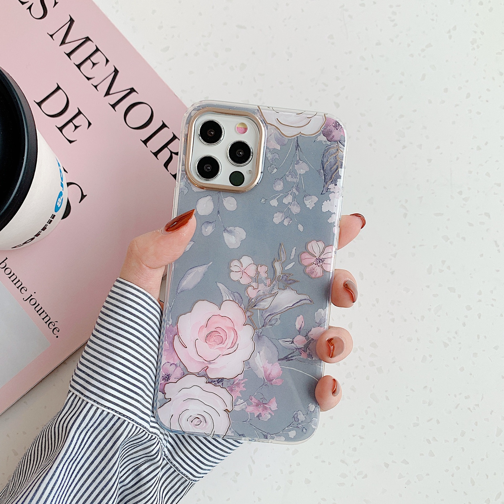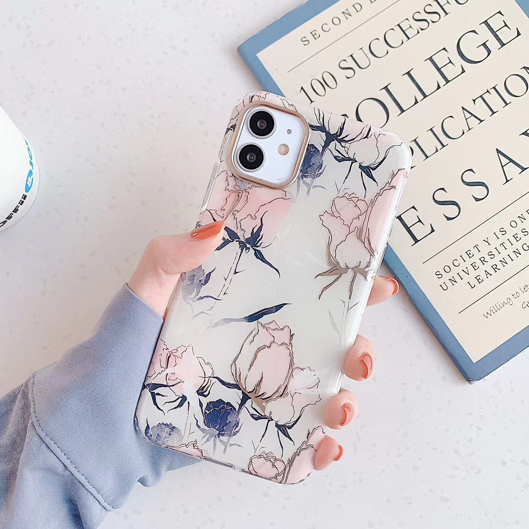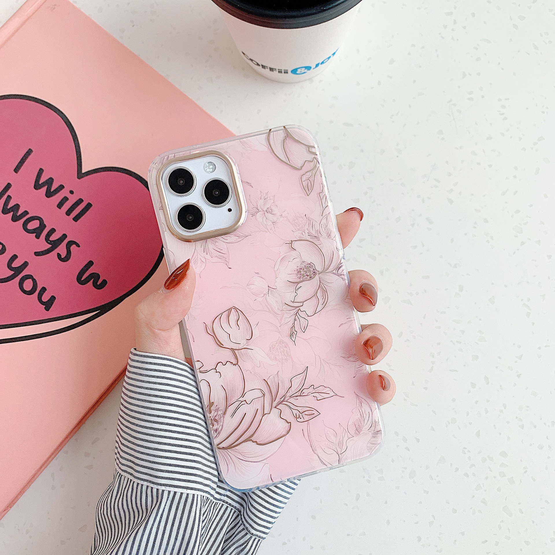 Compatible with Apple, Iphone12 Double-sided Filmed Mobile Phone Shell Apple X Electroplating Stitching Flowers Suitable For Xsmax Drop-resistant Pink