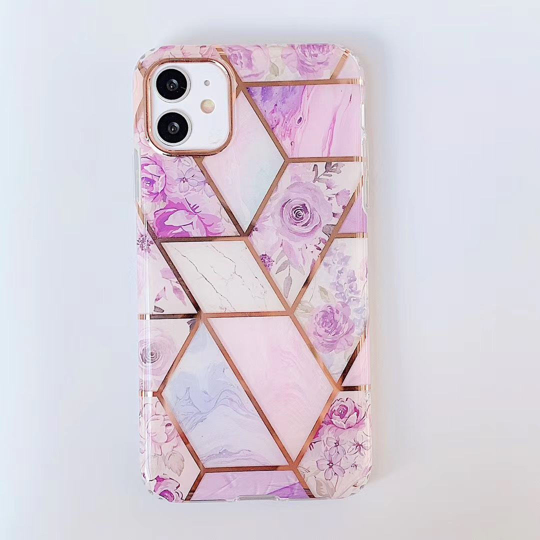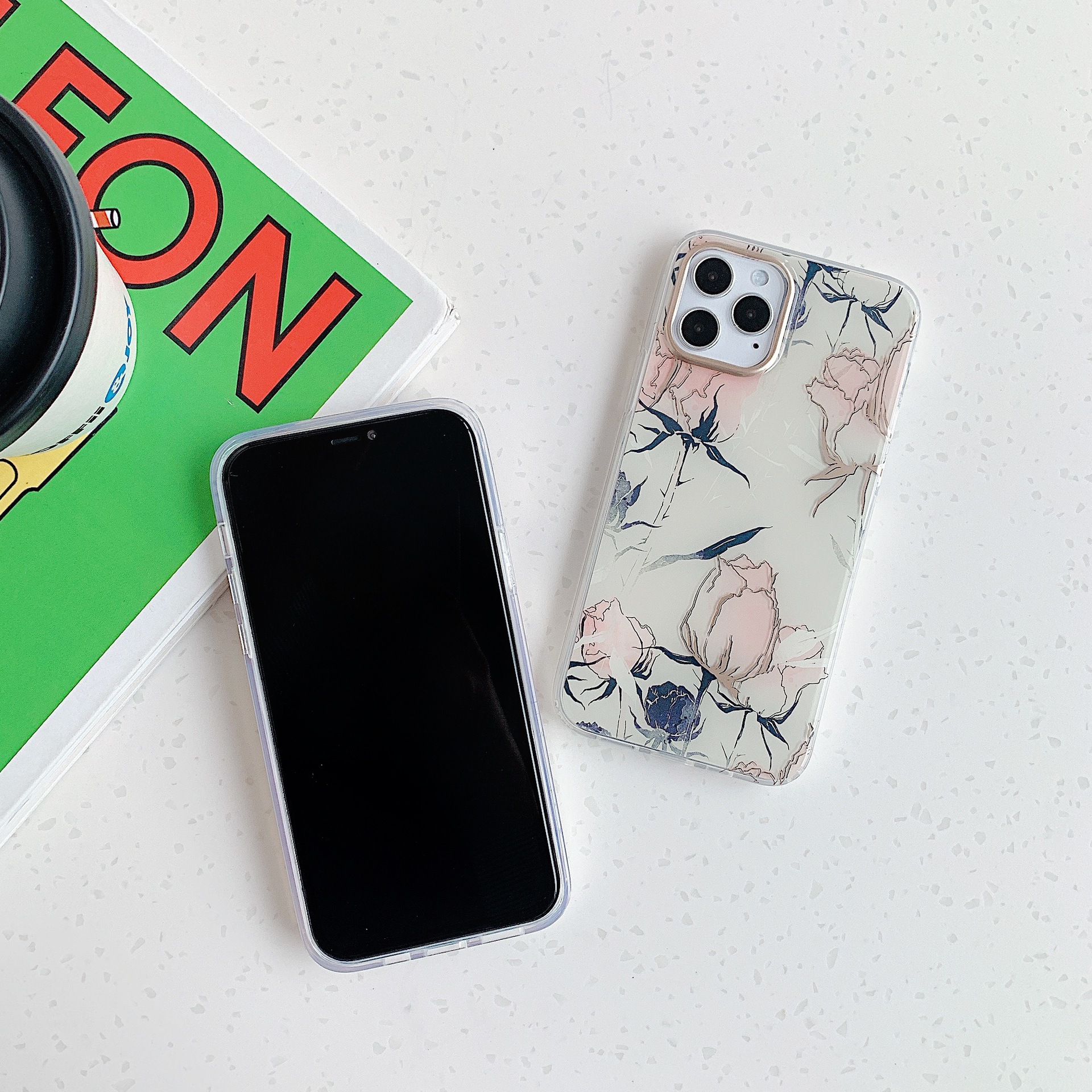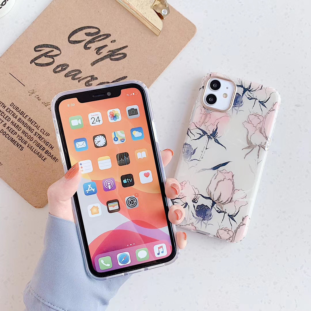 Compatible with Apple, Iphone12 Double-sided Filmed Mobile Phone Shell Apple X Electroplating Stitching Flowers Suitable For Xsmax Drop-resistant Pink