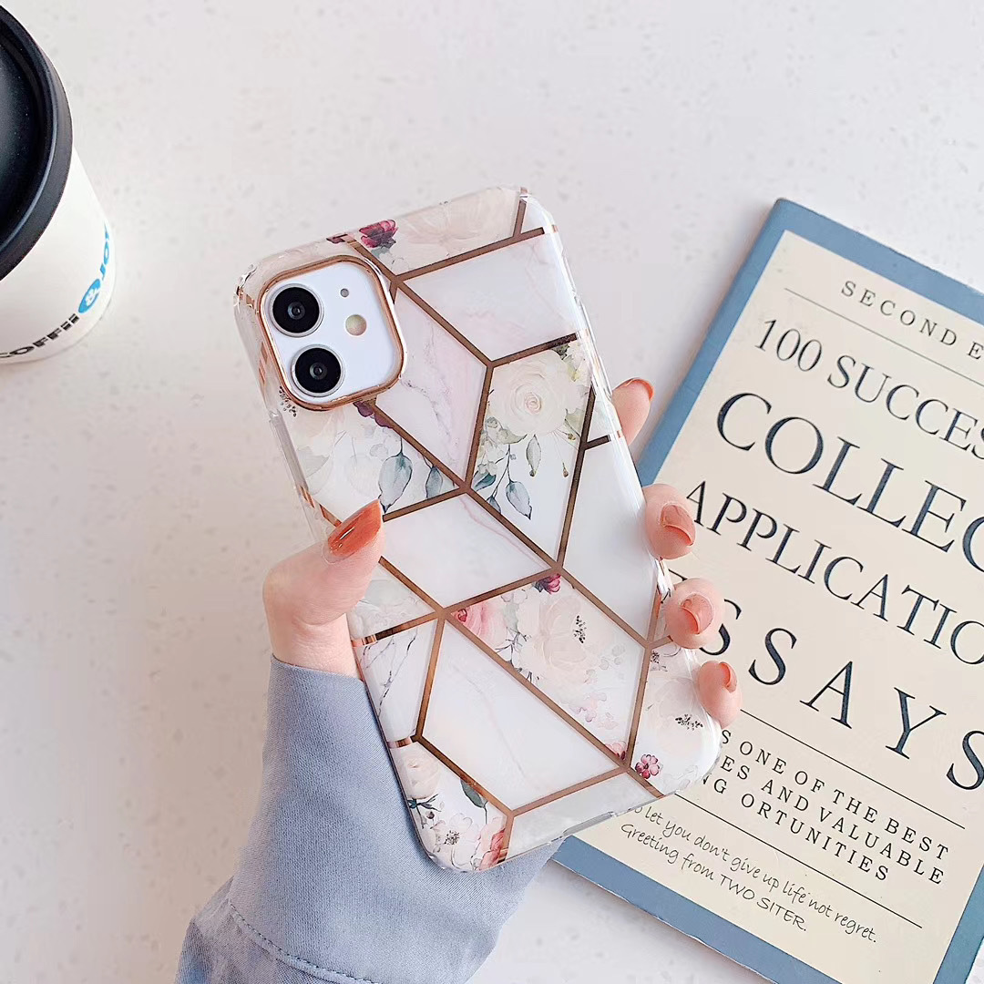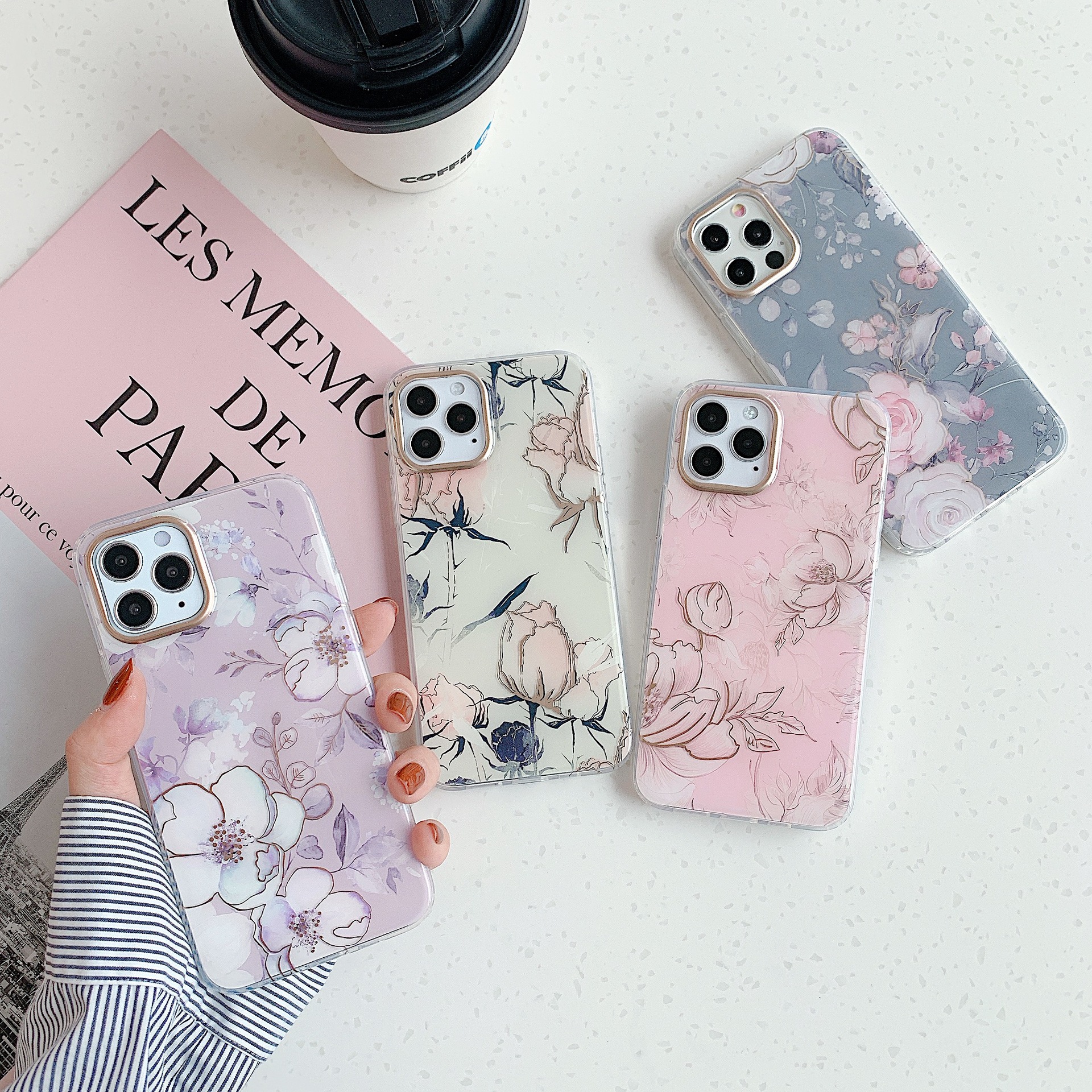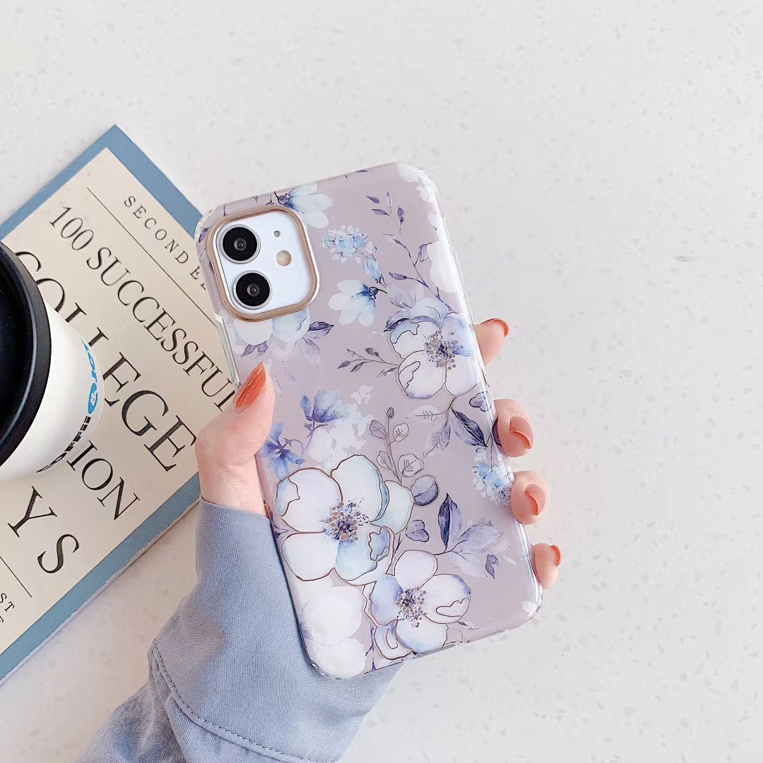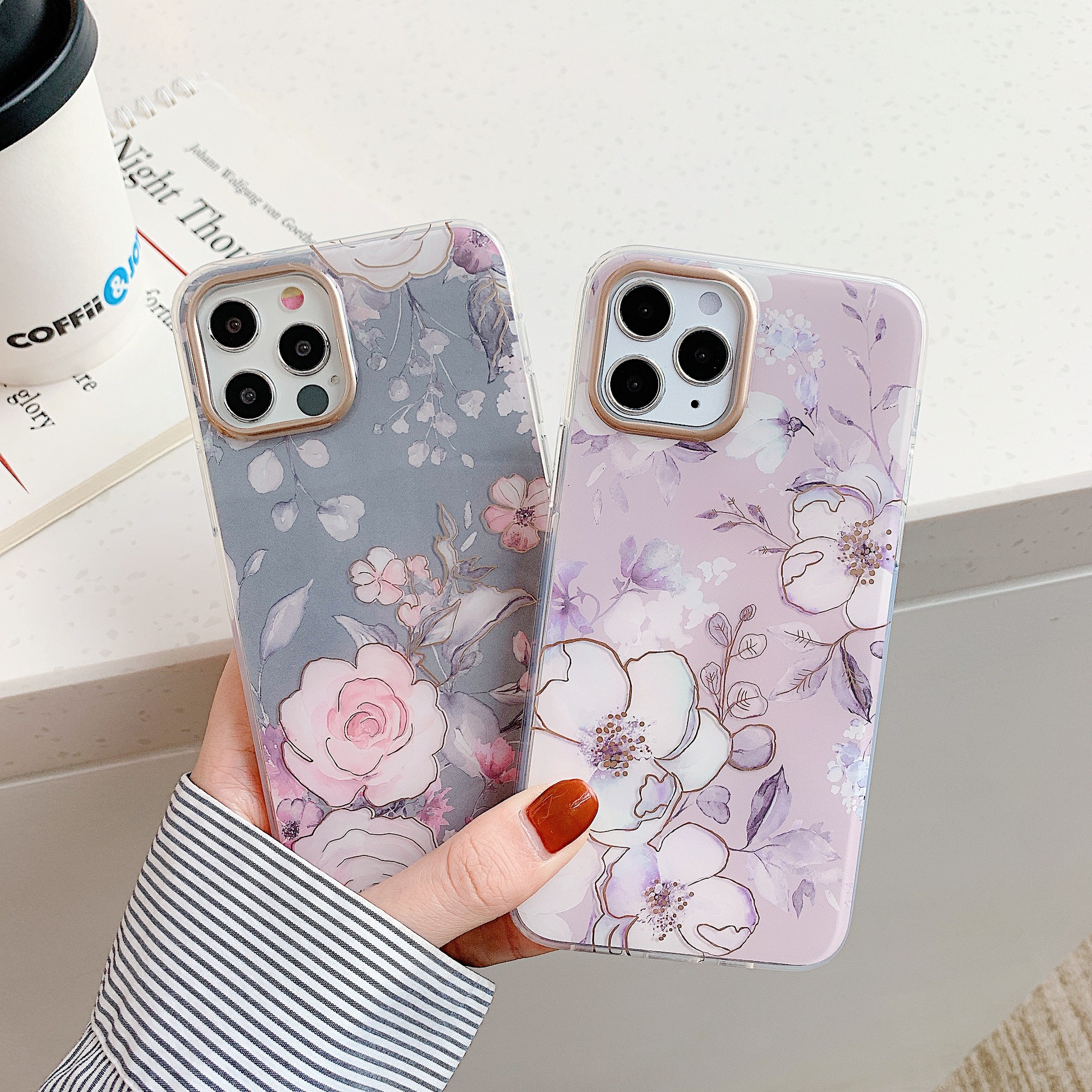 Compatible with Apple, Iphone12 Double-sided Filmed Mobile Phone Shell Apple X Electroplating Stitching Flowers Suitable For Xsmax Drop-resistant Pink