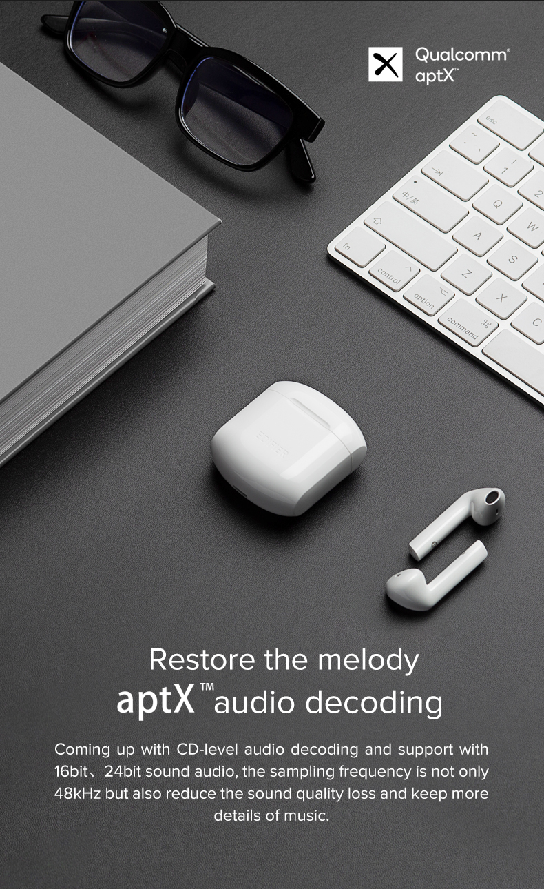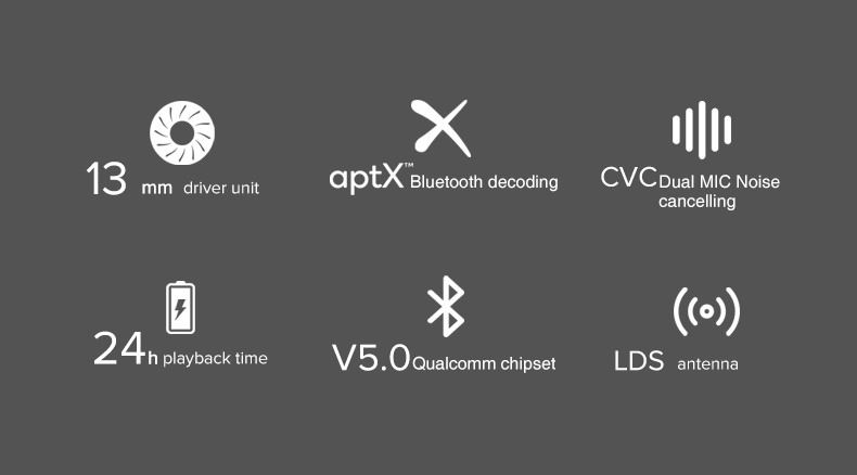 • Qualcomm chipset with aptX ™ audio decoding, reproduces a beautiful melody