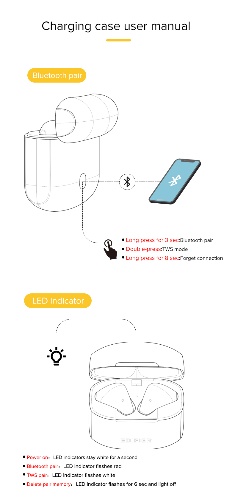 • Portable charging case with long reading time up to 6 + 18 hours
